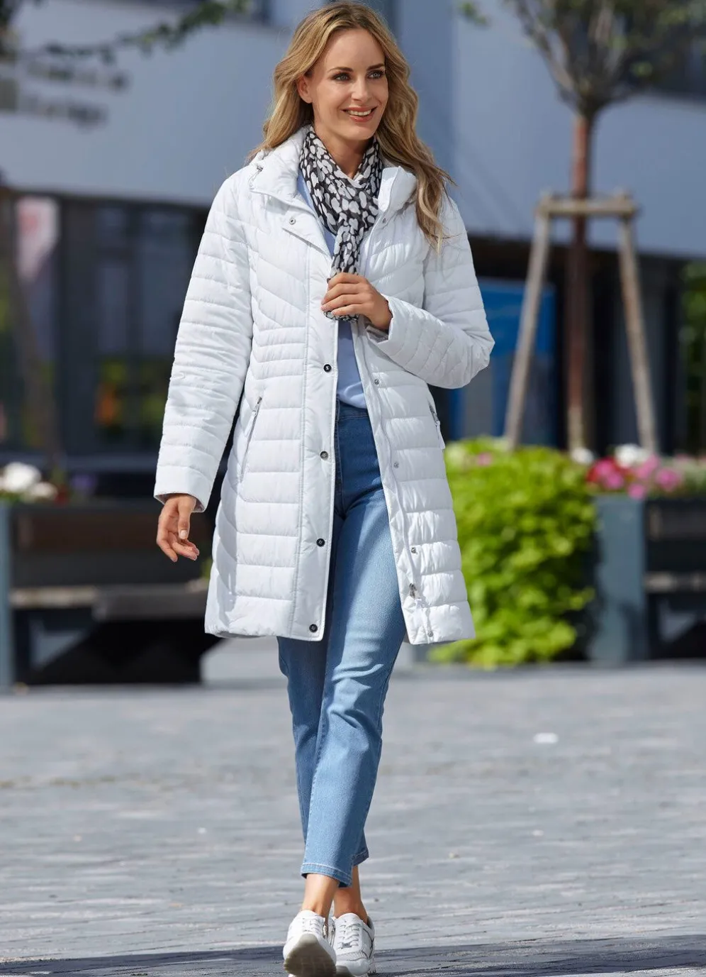 Die Qualität: Microfaser und Sandwichstepp 100% Polyester (aus recycelten Fasern); Watte mit Daunencharakter aus 100% Polyester. Waschbar