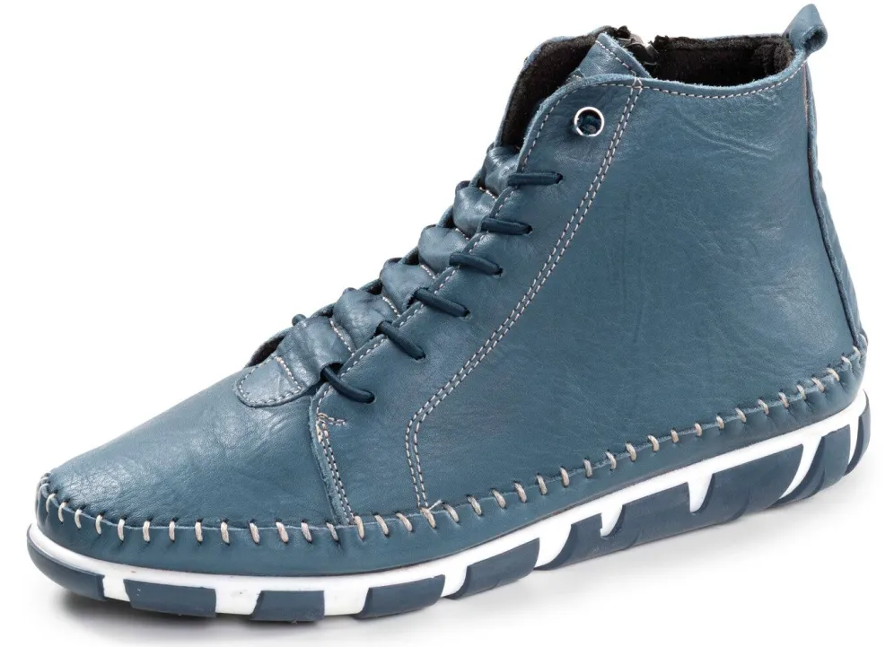 Boots aus Nappaleder mit dezenter Knitter-Struktur: Weite G, Elastikschnürung und Innenreißverschluss, Textilfutter, herausnehmbares Lederfußbett, leichte TR-Laufsohle sowie 10 mm Keilabsatz. Schafthöhe ca. 10 cm