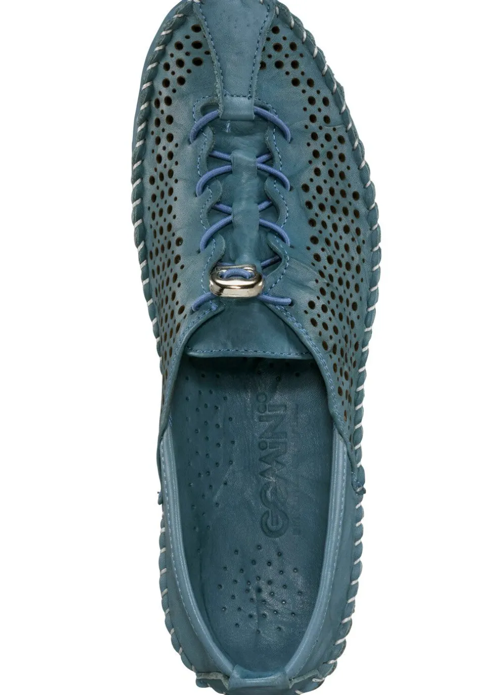 Perforierte Slipper aus schattiertem Rind-Nappaleder, in Mokassin-Machart: Weite G, elastisches Schnellschnürsystem mit Stopper, herausnehmbares Lederfußbett, leichte TR-Profilsohle, 15 mm Keilabsatz