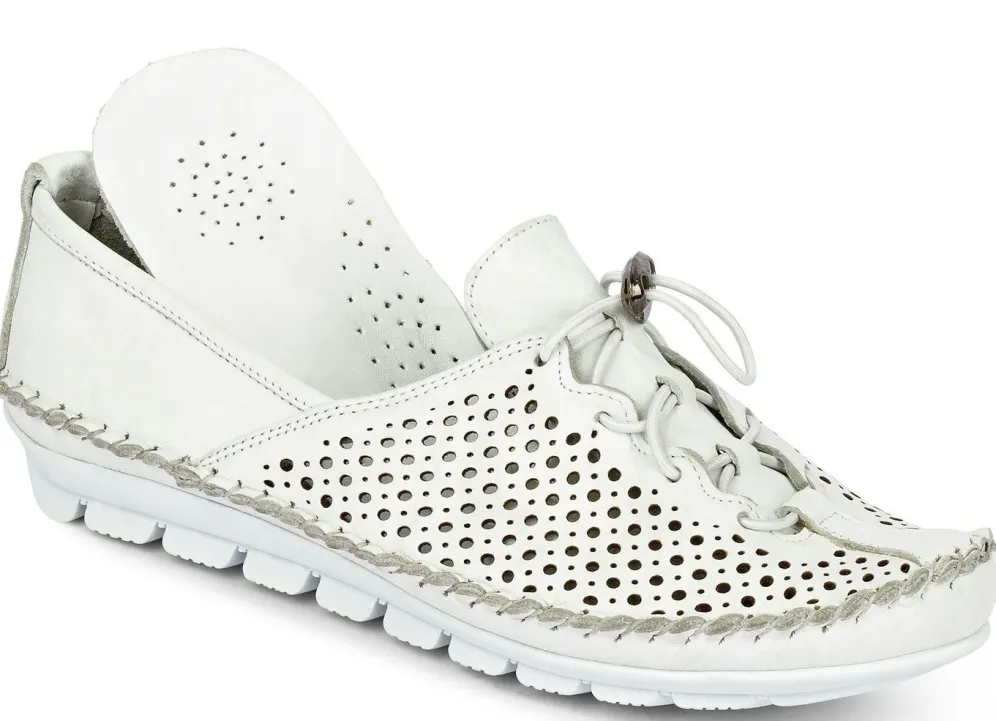 Perforierte Slipper aus schattiertem Rind-Nappaleder, in Mokassin-Machart: Weite G, elastisches Schnellschnürsystem mit Stopper, herausnehmbares Lederfußbett, leichte TR-Profilsohle, 15 mm Keilabsatz