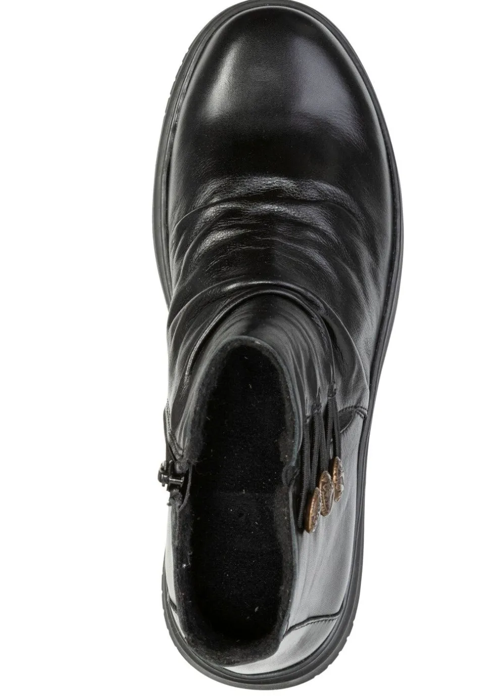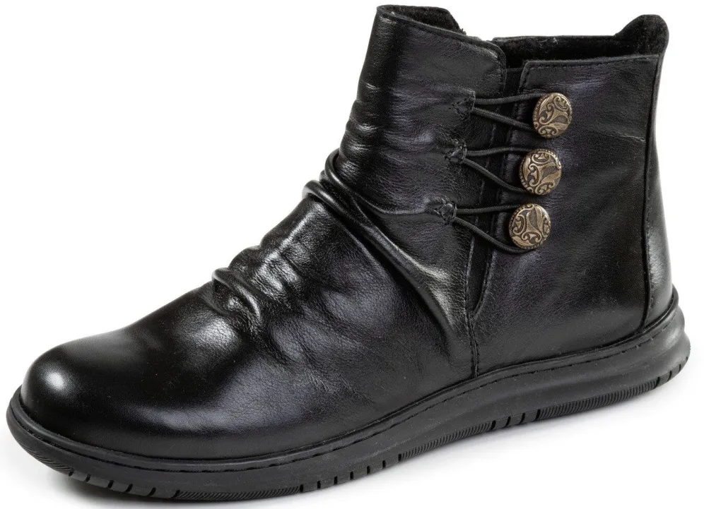 Boots aus weichem, teilweise schattiertem Rind-Nappaleder, mit Raffung, Dekoknöpfen und Gummizügen: Weite G, Innenreißverschluss, wärmendes Textilfutter, herausnehmbares Fußbett, leichte Gummi-Laufsohle, 10 mm Keil. Schafthöhe ca. 10 cm