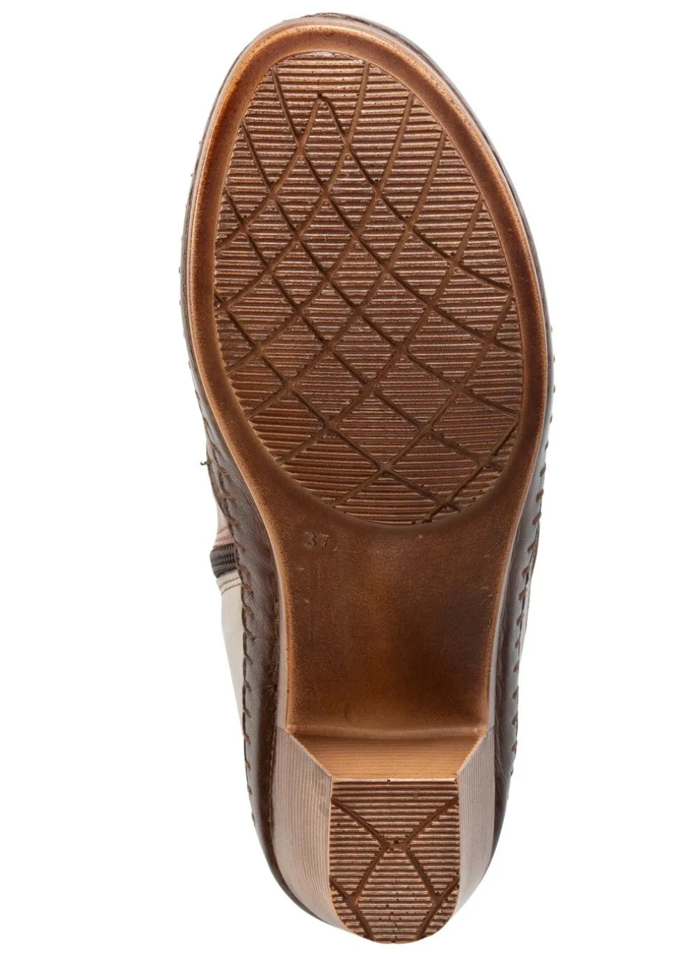 Stiefeletten im Patchwork-Stil, aus genarbtem Rind-Nappaleder, mit Innenreißverschluss und Seitengummizug: Weite G, wärmendes Textilfutter, gepolsterte Decksohle, superleichte PU-Riffelsohle, 60 mm Absatz. Schafthöhe ca. 13 cm
