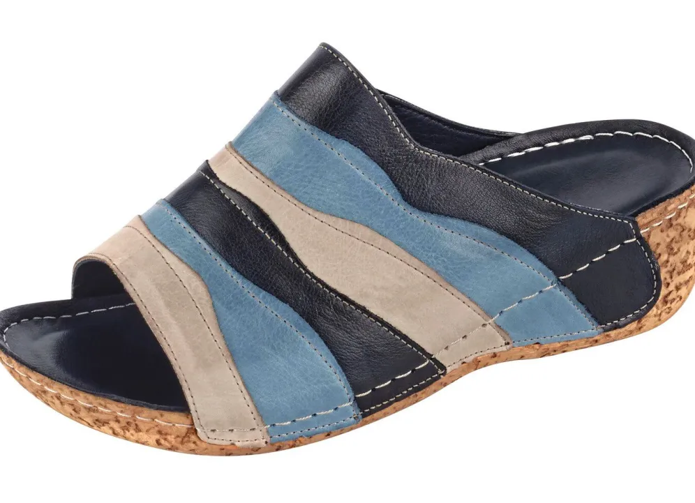 Pantolette aus schattiertem Rind-Nappaleder: in Weite G, seitlicher Gummizug, Lederfutter, gepolstertes Lederfußbett, superleichte PU-Laufsohle sowie 40 mm Keilabsatz