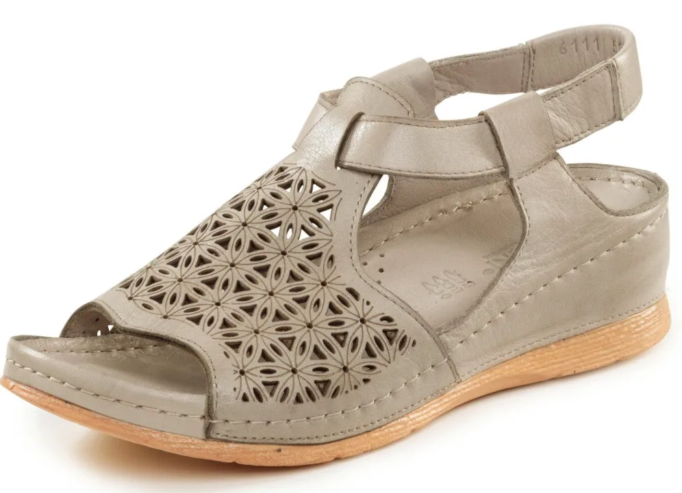 Luftig perforierte Sandale aus dezent schattiertem Nappaleder, mit Prägung: Weite G, verdeckter Fersen-Gummizug, Lederfutter, gepolstertes Lederfussbett, superleichte PU-Laufsohle sowie 30 mm Keilabsatz