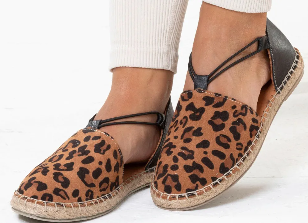Trendige Slipper aus teilweise geflochtenem Nappaleder, in Schwarz-Braun mit Leoprint-Veloursleder kombiniert: Weite G, Elastikbänder, gepolsterte Lederdecksohle, superleichte TR-Riffelsohle mit flachem, kordelbezogenem Keil