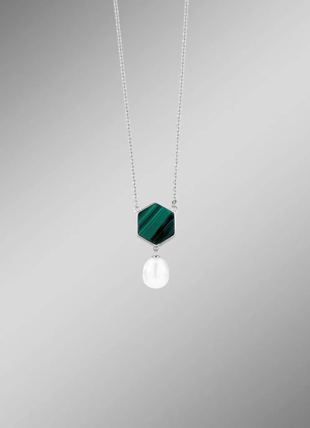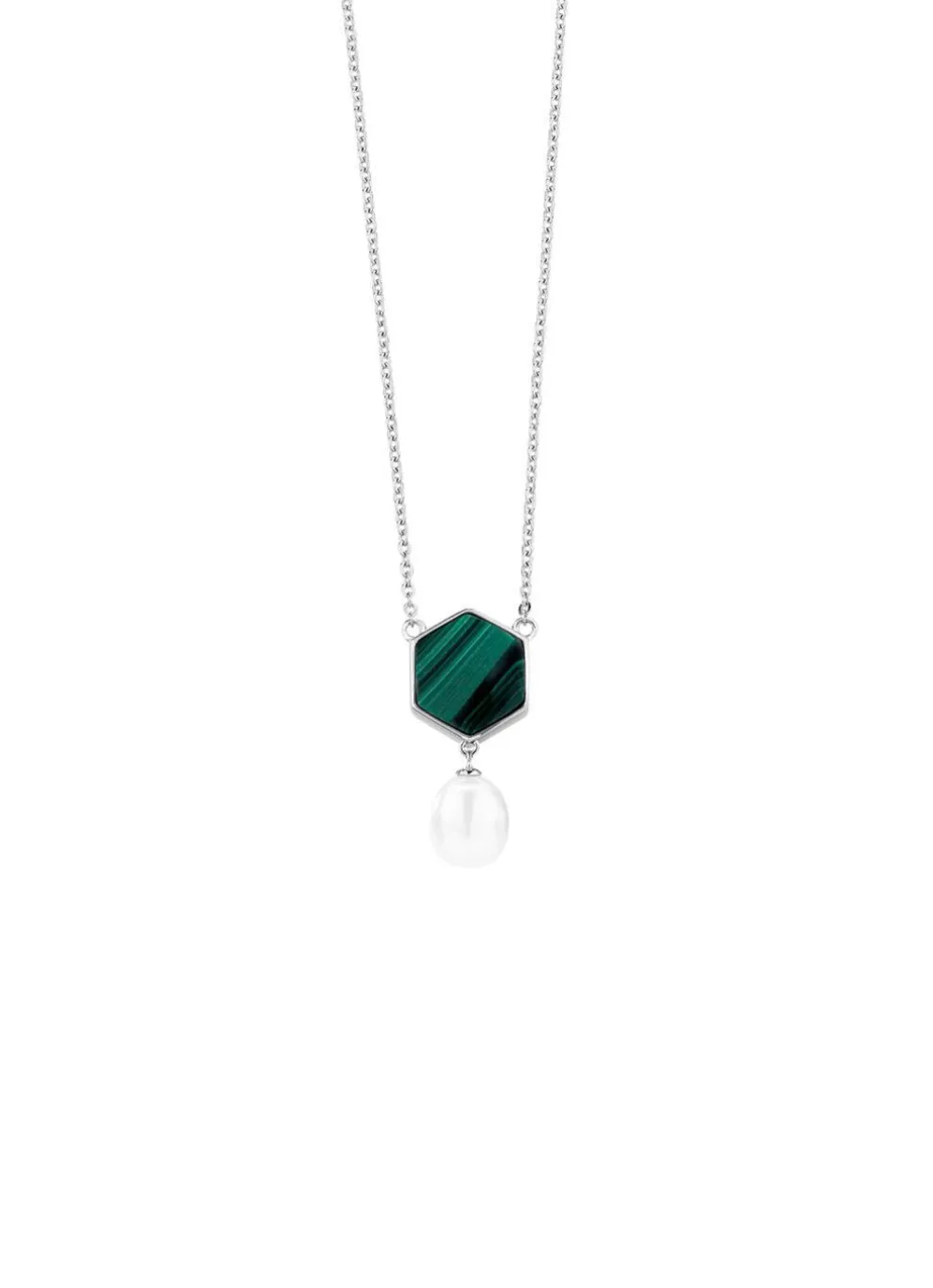 Halskette mit Süßwasser-Zuchtperle und echt Malachit