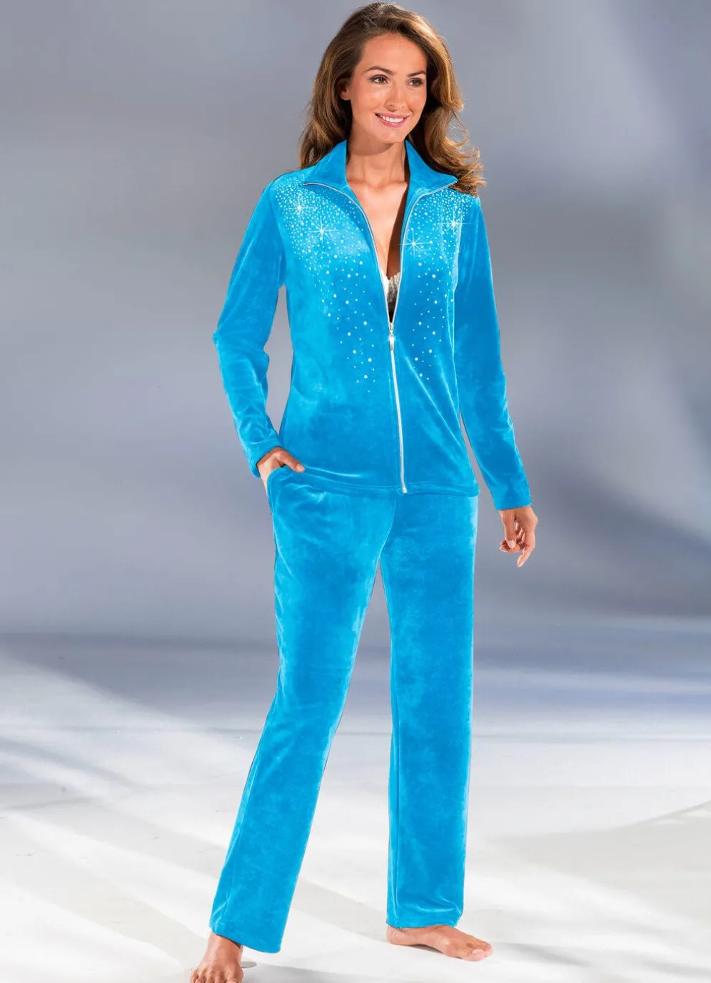 Hausanzug mit extravaganter Stickereizier