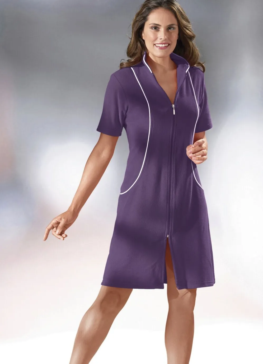 Hauskleid mit dekorativer Kontrastpaspelierung