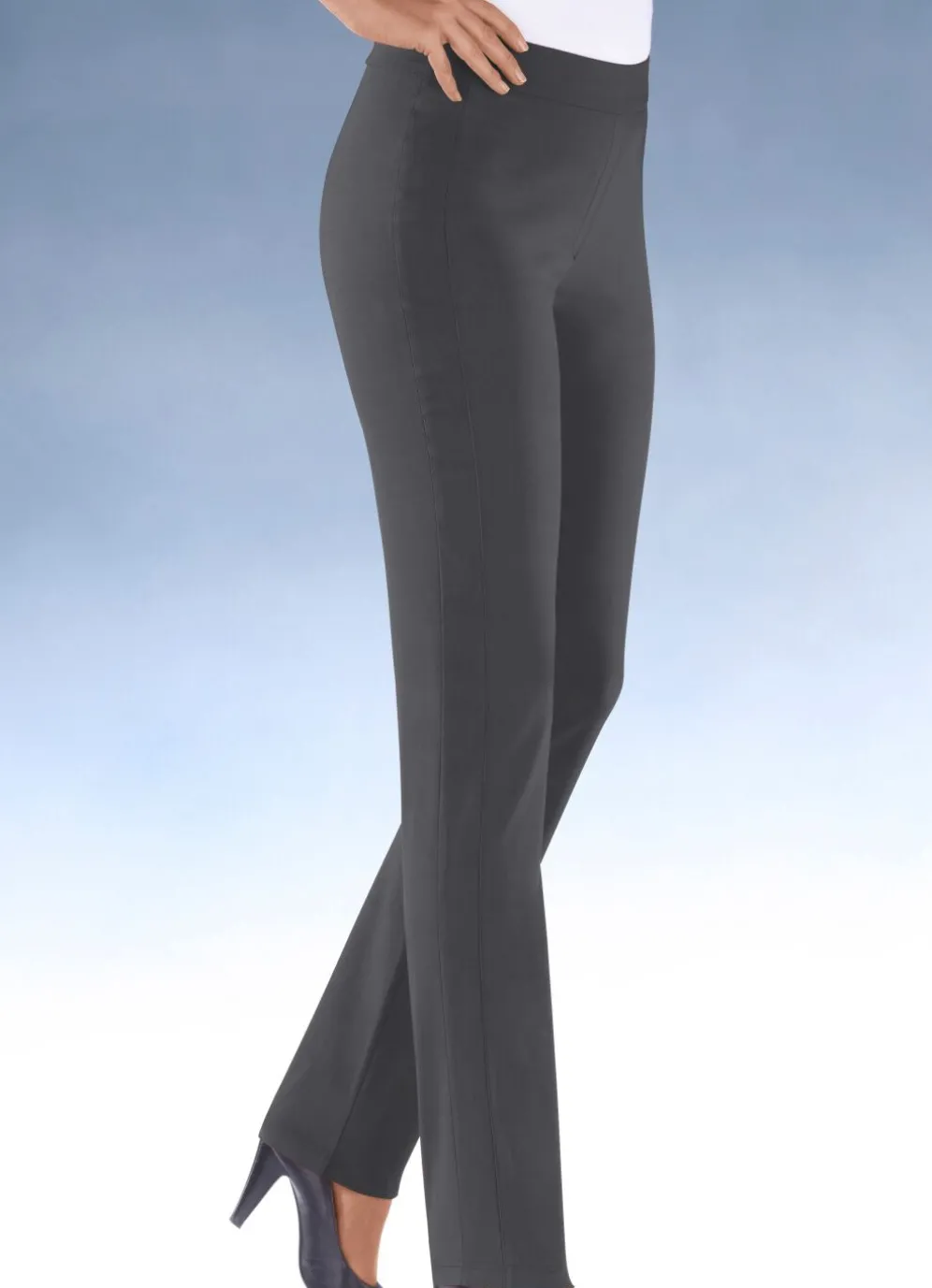 Ihr Modell BECKY – angesagte, hochelastische Hose mit aktueller, schmaler Fußweite: komfortable Schlupfform, glatt anliegend dank des innenliegenden, unsichtbaren Rundum-Dehnbundes, vordere Reißverschluss-Zierblende, vorverlegte, abgesteppte Seitennaht, die für eine streckende Optik sorgt. Innenbeinlänge ca. 79 cm, Fußweite ab 36 cm.