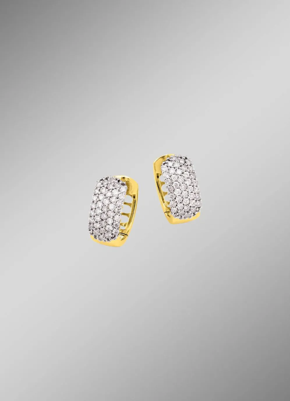 Strahlende Kreation – Klappcreolen aus Gold mit Brillanten. Luxus, der sich sehen lassen kann: Diese exquisiten Klappcreolen aus feinem 375/- Gold vereinen zeitlose Form mit funkelnder Raffinesse. Mit einer Länge von 15 mm und einer Breite von 7 mm schmiegen sie sich perfekt ans Ohr und setzen 78 weiße Brillanten mit ca. 1,00 Karat, Reinheit: Piqué 2 brillant in Szene. Jeder Stein entfaltet sein eigenes Lichtspiel – für einen Auftritt voller Glanz und Stil.