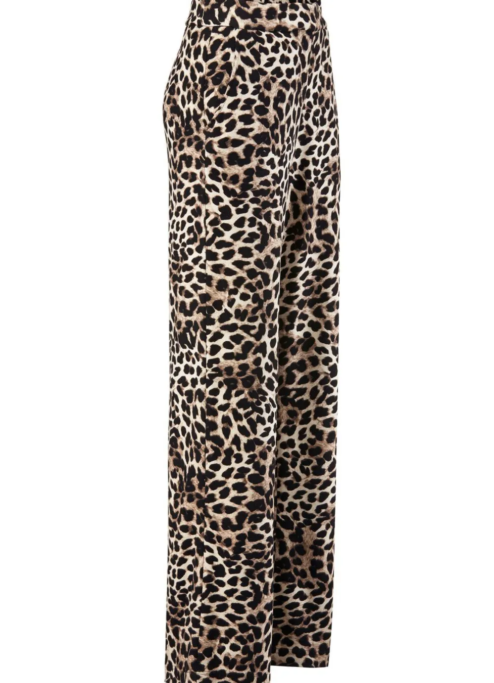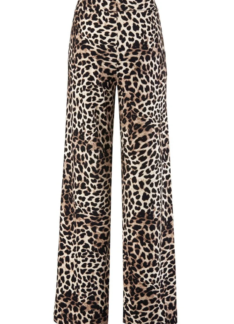 Angesagte Hose mit modisch weitem Beinverlauf in aktueller Leo-Dessinierung: komfortable Schlupfform, glatt anliegend dank des innenliegenden, unsichtbaren Rundum-Dehnbundes sowie Seitentaschen. Innenbeinlänge ca. 80 cm, Fußweite ab 52 cm.