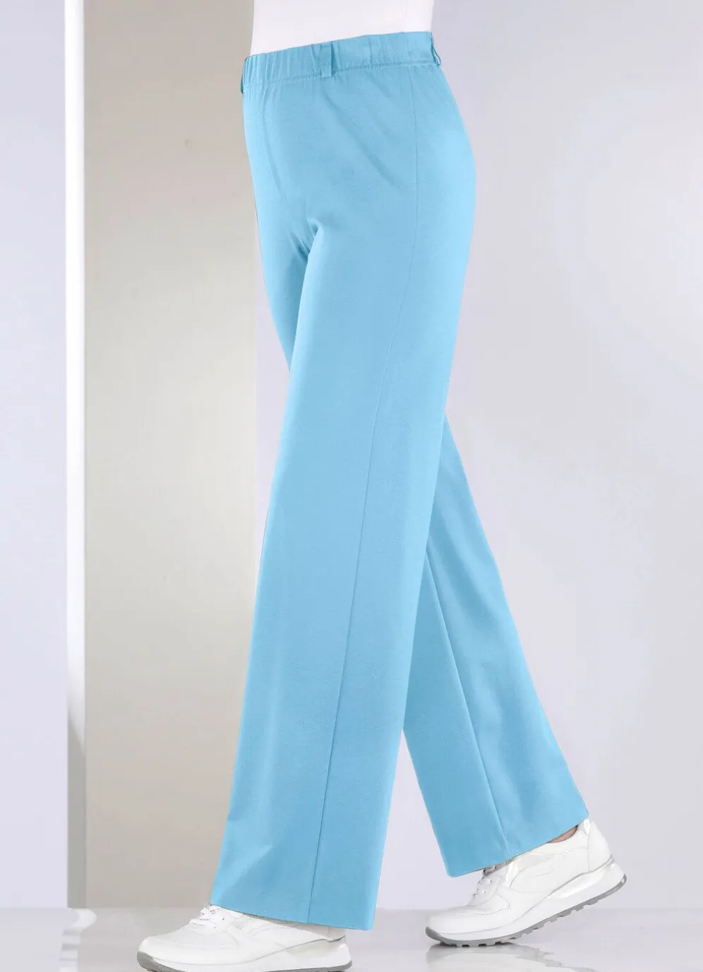 Ein modischer Hingucker ist diese attraktive Hose in Palazzo-Form: weiter Beinverlauf, Schlupfform mit Dehnbund rundum sowie Gürtelschlaufen. Innenbeinlänge ca. 78 cm, Fußweite ab 52 cm.