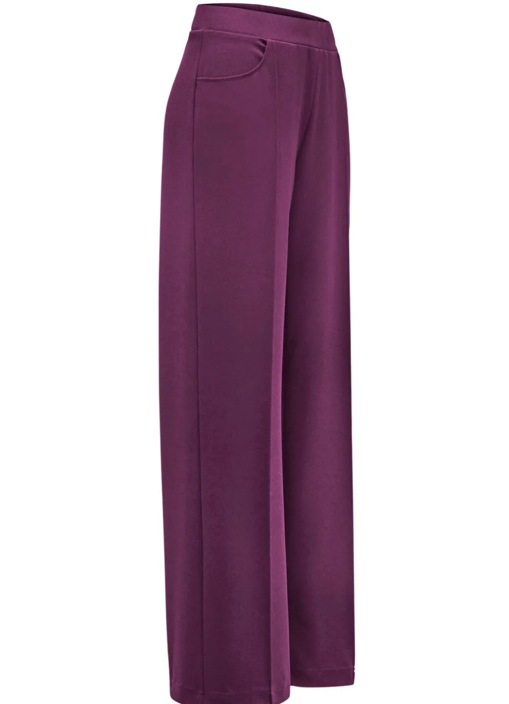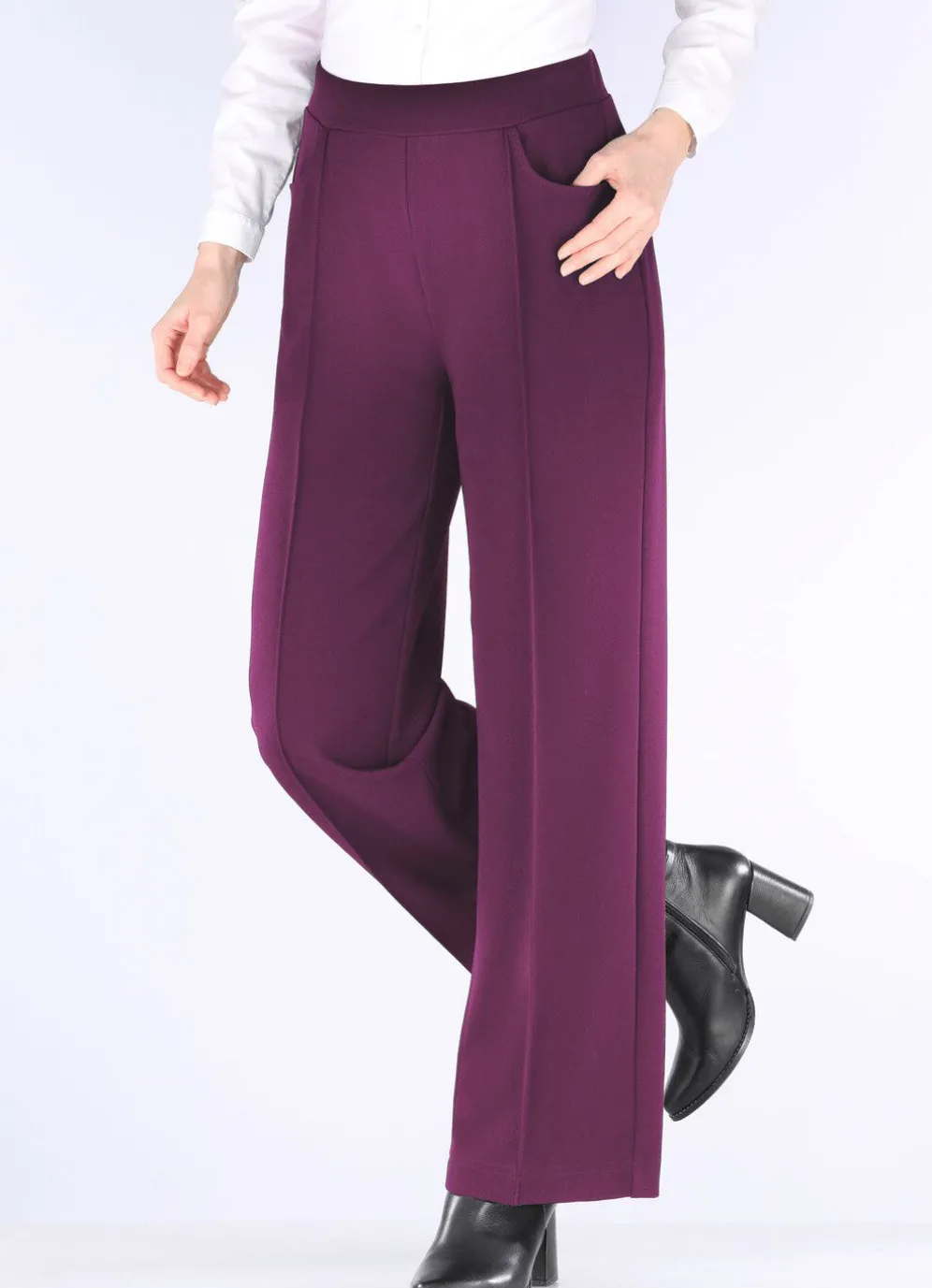 Trendgenaue Hose in modischer Weite: bequeme Schlupfform, glatt anliegend dank des innenliegenden Rundum-Dehnbundes, abgesteppte Biesen, die für eine streckende Optik sorgen sowie Seitentaschen. Innenbeinlänge ca. 76 cm, Fußweite ab 54 cm.