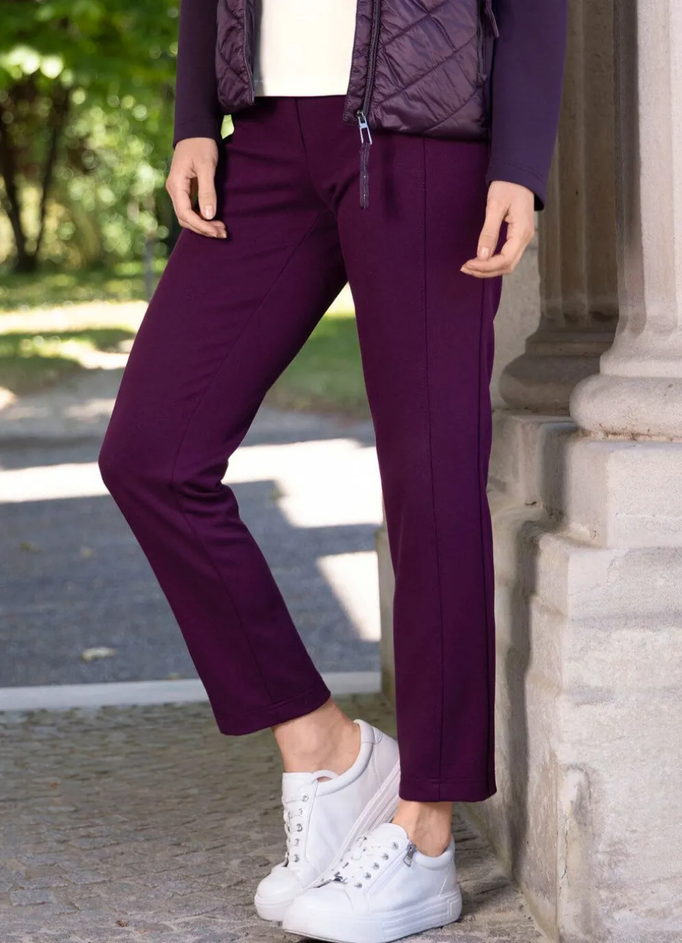 Angesagte Hose von RABE: Schlupfform, Rundum-Dehnbund, Zierkordelzug, angedeutete Reißverschluss-Zierblende, gerade schmale Beinform mit Ziernähten vorne, eingearbeitete Reißverschlusstaschen und Zierpatten hinten.