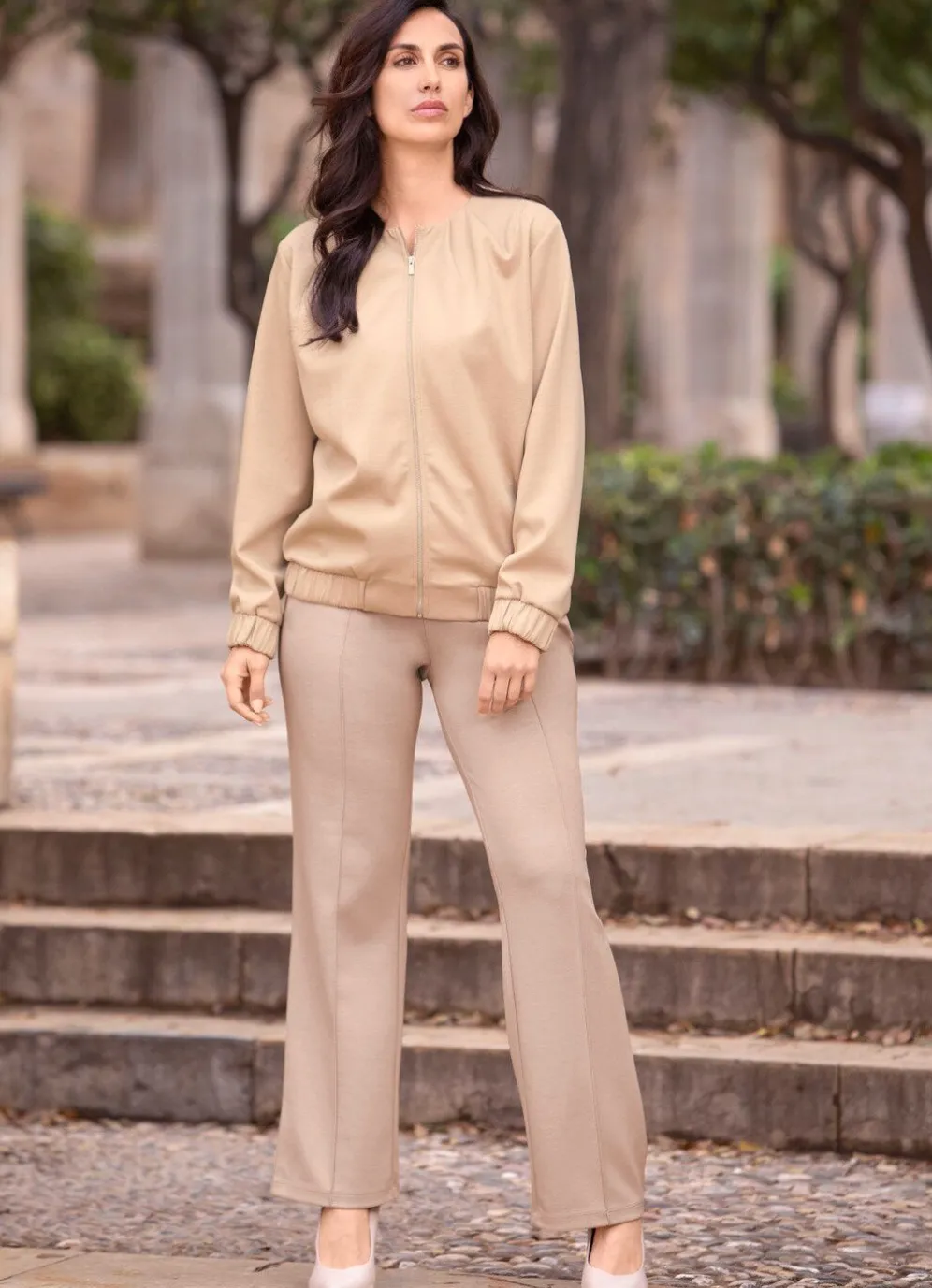 Fabelhafte Hose in modischer Weite von Stilschmiede: bequeme Schlupfform, glatt anliegend dank des innenliegenden Rundum-Dehnbundes, abgesteppte Biesen, die für eine streckende Optik sorgen, Seitentaschen sowie angedeutete paspelierte Gesäßtaschen. Innenbeinlänge ca. 78 cm, Fußweite ab 46 cm