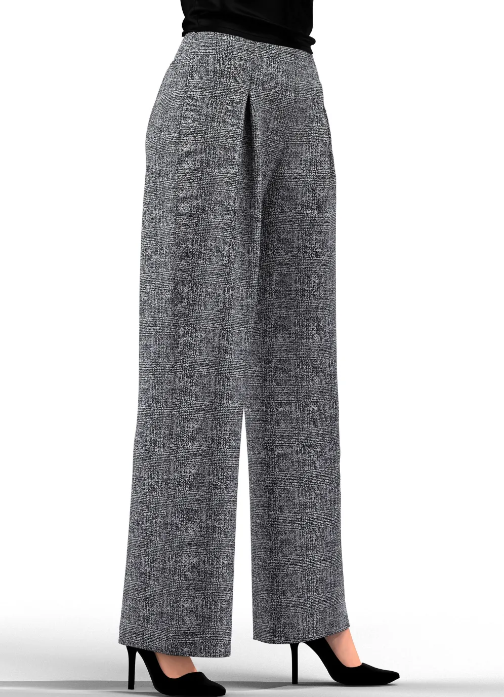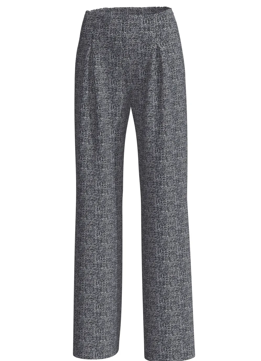 Fabelhafte Hose mit aktueller Beinweite und Glencheckdessinierung: komfortable Schlupfform, rückwärtiger Dehnbundeinsatz, vordere, glatte Bundverarbeitung sowie Bundfalten im Vorderteil. Innenbeinlänge ca. 78 cm, Fußweite ab 60 cm.