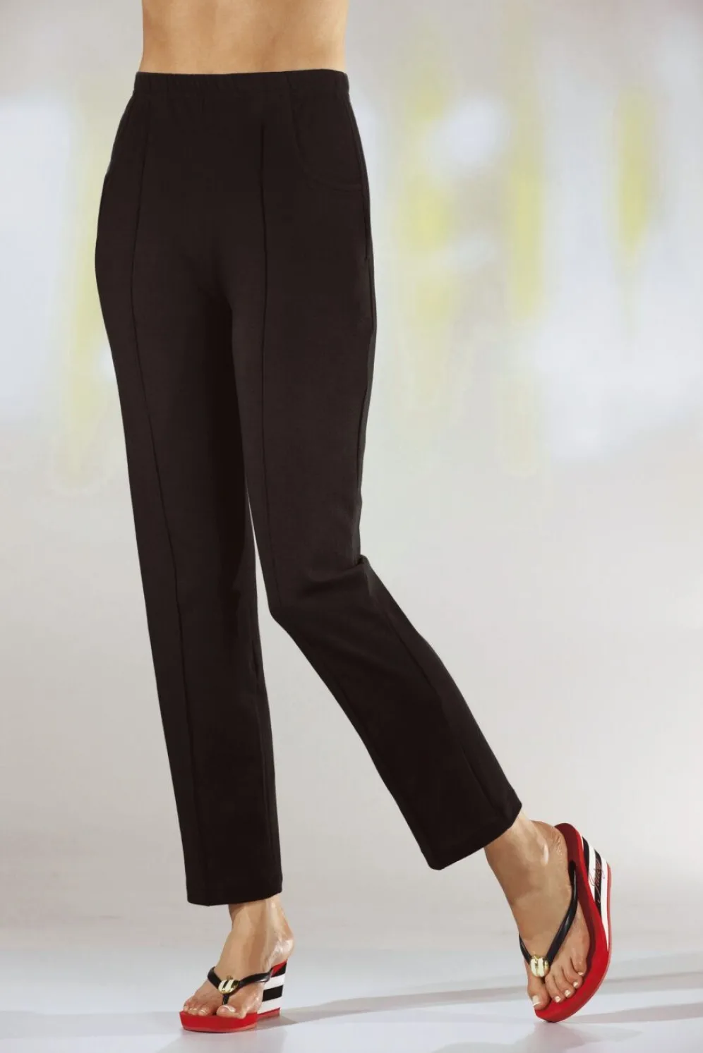 Flotte Hose in langer, gerader Form, mit bequemem Dehnbund rundum, zwei Schubtaschen sowie Biesenzier im Vorderteil.