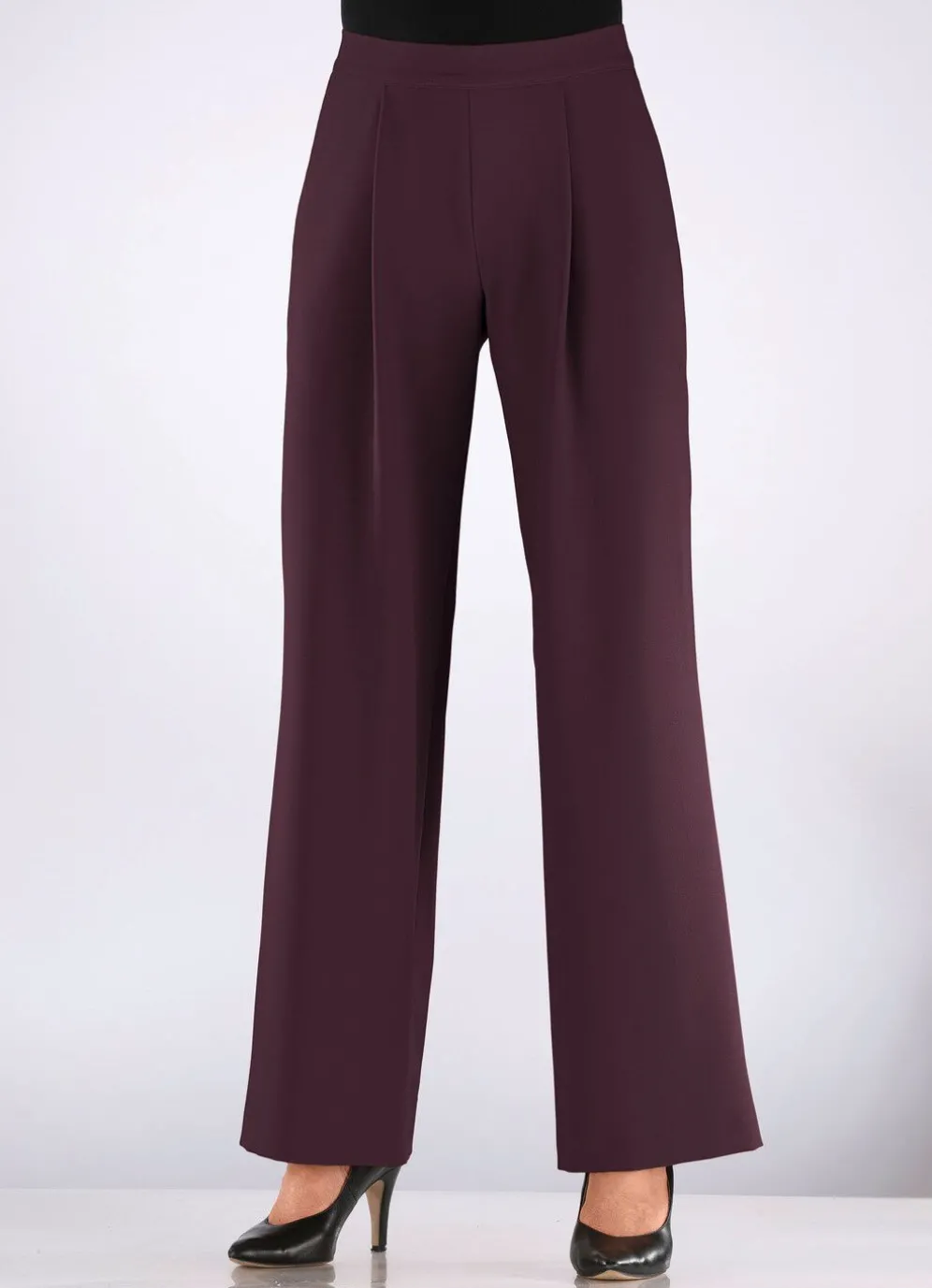 Fabelhafte Hose mit aktueller Beinweite: komfortable Schlupfform, rückwärtiger Dehnbundeinsatz, vordere, glatte Bundverarbeitung, Seitentaschen sowie Bundfalten im Vorderteil. Innenbeinlänge ca. 80 cm. Fußweite ab 52 cm.