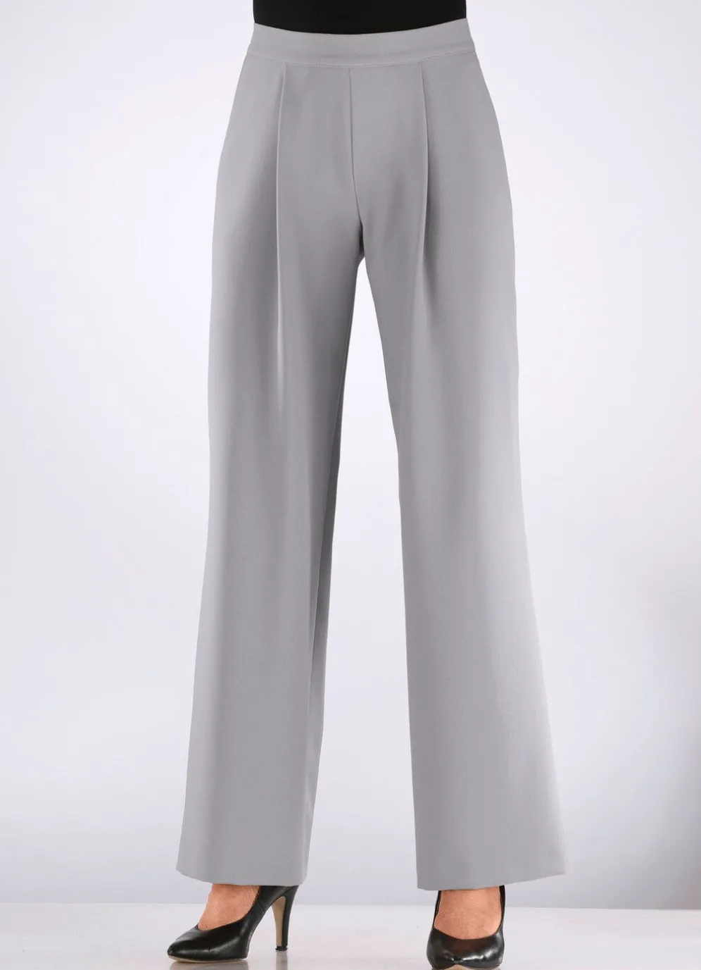 Fabelhafte Hose mit aktueller Beinweite: komfortable Schlupfform, rückwärtiger Dehnbundeinsatz, vordere, glatte Bundverarbeitung, Seitentaschen sowie Bundfalten im Vorderteil. Innenbeinlänge ca. 80 cm. Fußweite ab 52 cm.