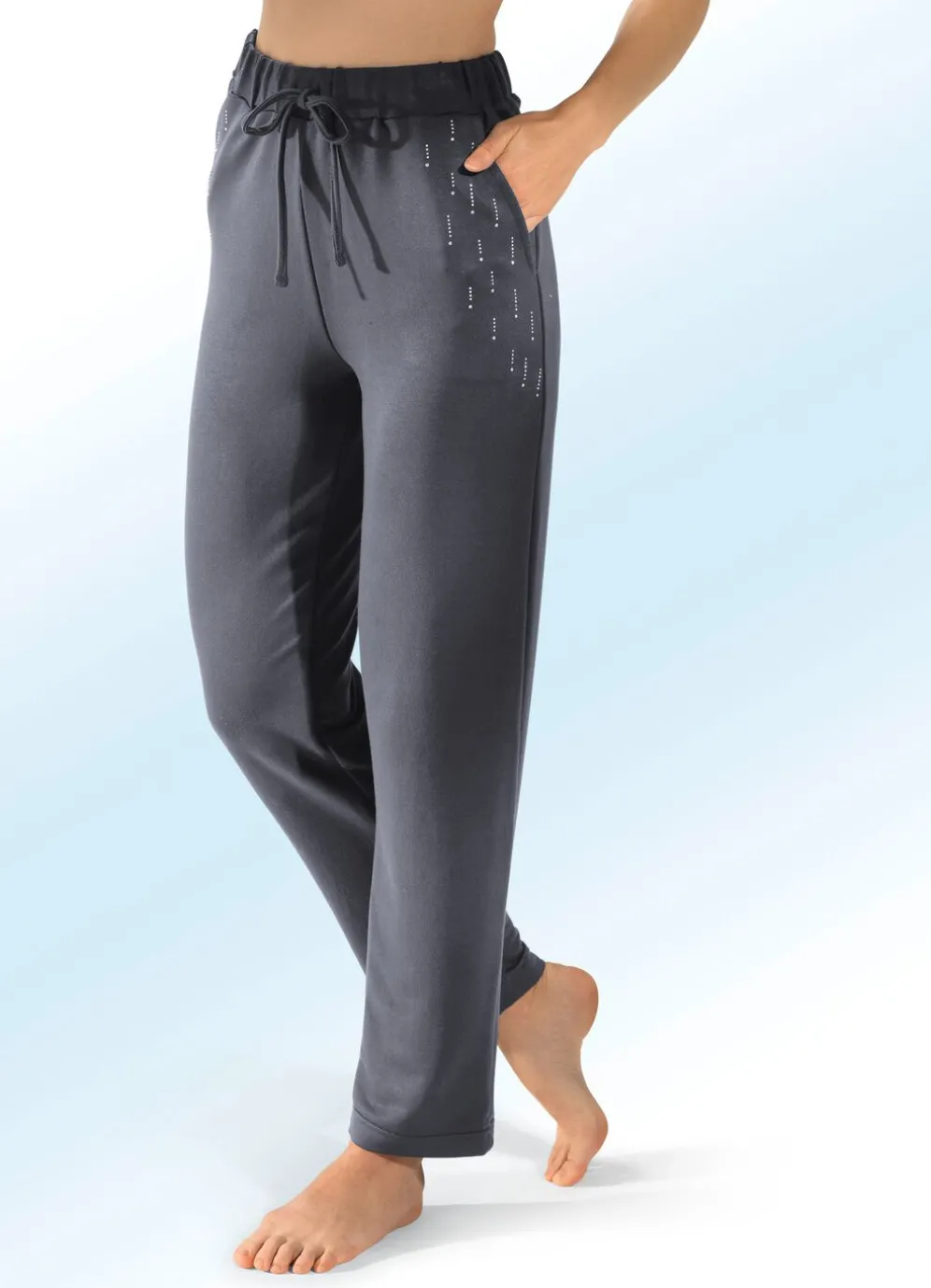 Diese tolle Hose von PLANTIER in langer, gerader Form, mit bequemem Dehnbund rundum, Tunnelzugband, zwei Seitennahttaschen sowie silberfarbener Nietenzier im Vorderteil überzeugt durch ihre Qualität!