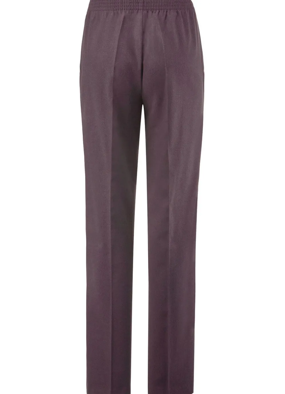 Trendgenau, hellgrau melierte Hose in modischer Weite von Stilschmiede: bequeme Schlupfform, rückwärtiger Dehnbundeinsatz, vordere, glatte Bundverarbeitung sowie Seitentaschen. Innenbeinlänge ca. 78 cm, Fußweite ab 42 cm.