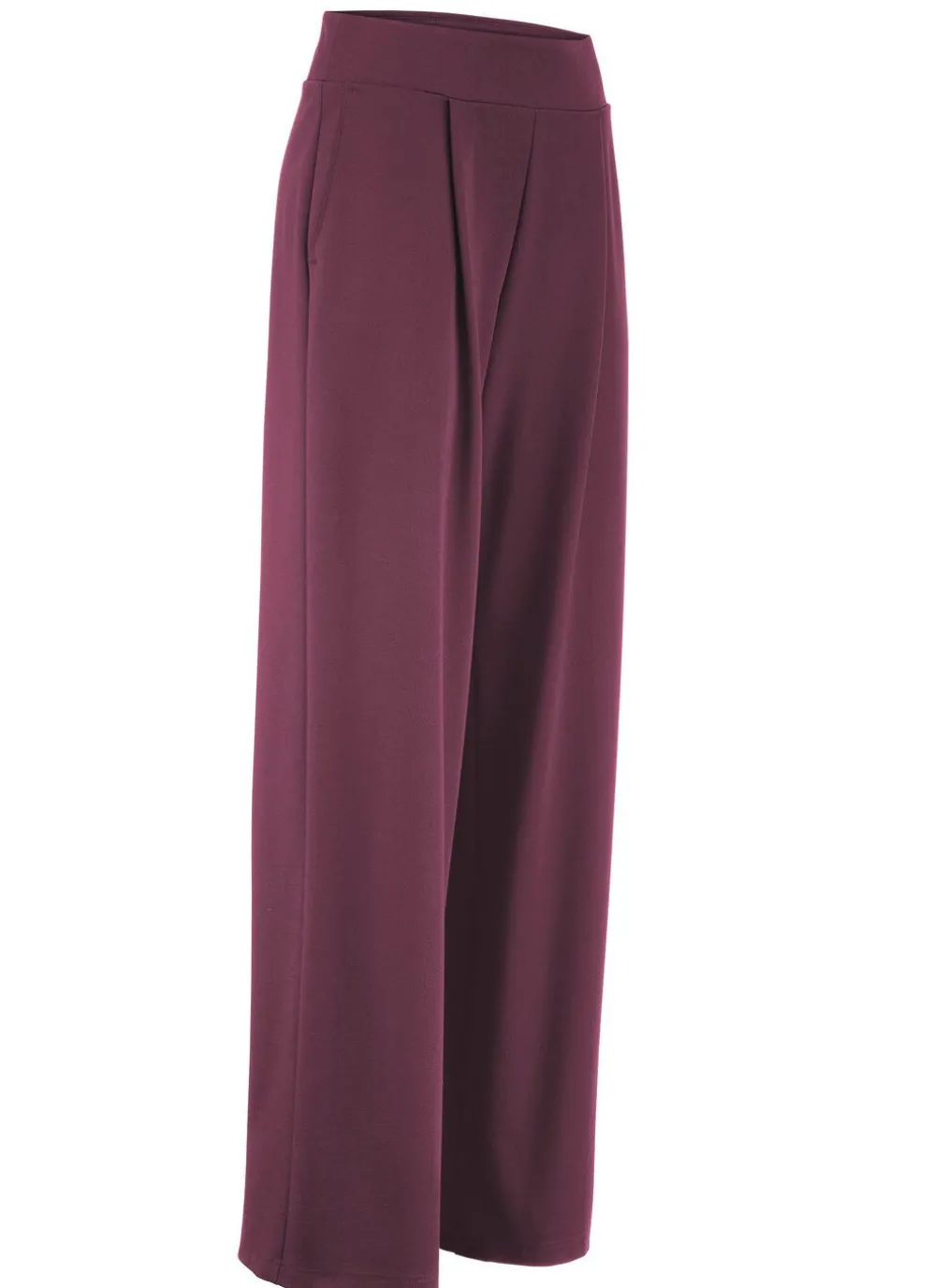 Ihr Modell VITA – fabelhafte Hose mit modisch weitem, leicht ausgestelltem Beinverlauf in Schlupfform, glatt anliegend dank des innenliegenden Rundum-Dehnbundes, Seitentaschen sowie Bundfalten im Vorderteil. Innenbeinlänge ca. 79 cm, Fußweite ab 54 cm.