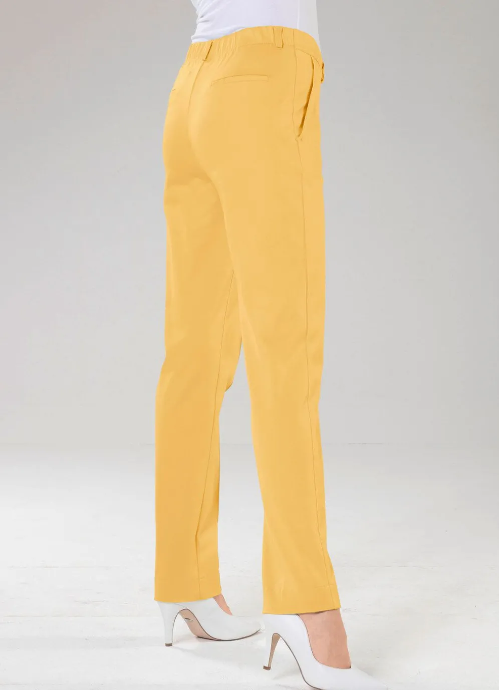 Bequeme Hose mit Ziersteppungen von Stilschmiede: komfortable Schlupfform, dank des rückwärtigen Dehnbuneinsatzes, vordere Reißverschluss-Zierblende, Seitentaschen, angedeutete Paspeltaschen im Rückteil sowie abgesteppte Biesen im Vorderteil, die für eine schlanke Silhouette sorgen. Innenbeinlänge ca. 78 cm, Fußweite ab 36 cm.