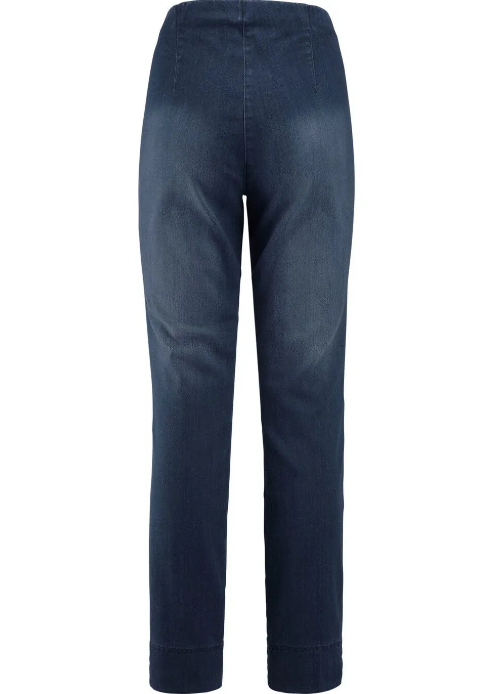 Tragangenehme Jeans in bequemer Schlupfform: angeschnittener Bund, glatt anliegend dank der innenliegenden, komfortablen Gummibundeinlage, abgesteppte Biesen im Vorderteil, breiter, abgesteppter Saumabschluss mit seitlich Schlitz. Innenbeinlänge ca. 78 cm, Fußweite ab 30 cm