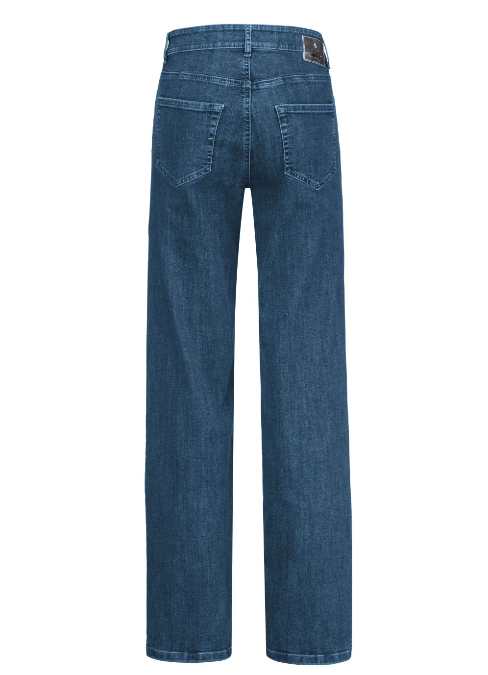 Stars by ascari – Modischer Denim-Look mit Stern-Details. Zeitlose Jeans mit weiterem Beinverlauf in 5-Pocket-Form mit dekorativen Ziernieten, Knopf- und Reißverschluss, Gürtelschlaufen, Jeanssattel, Sternniete auf der Kleingeldtasche sowie Knopf mit Sternprägung. Innenbeinlänge ca. 78 cm, Beinweite ca. 44 cm.