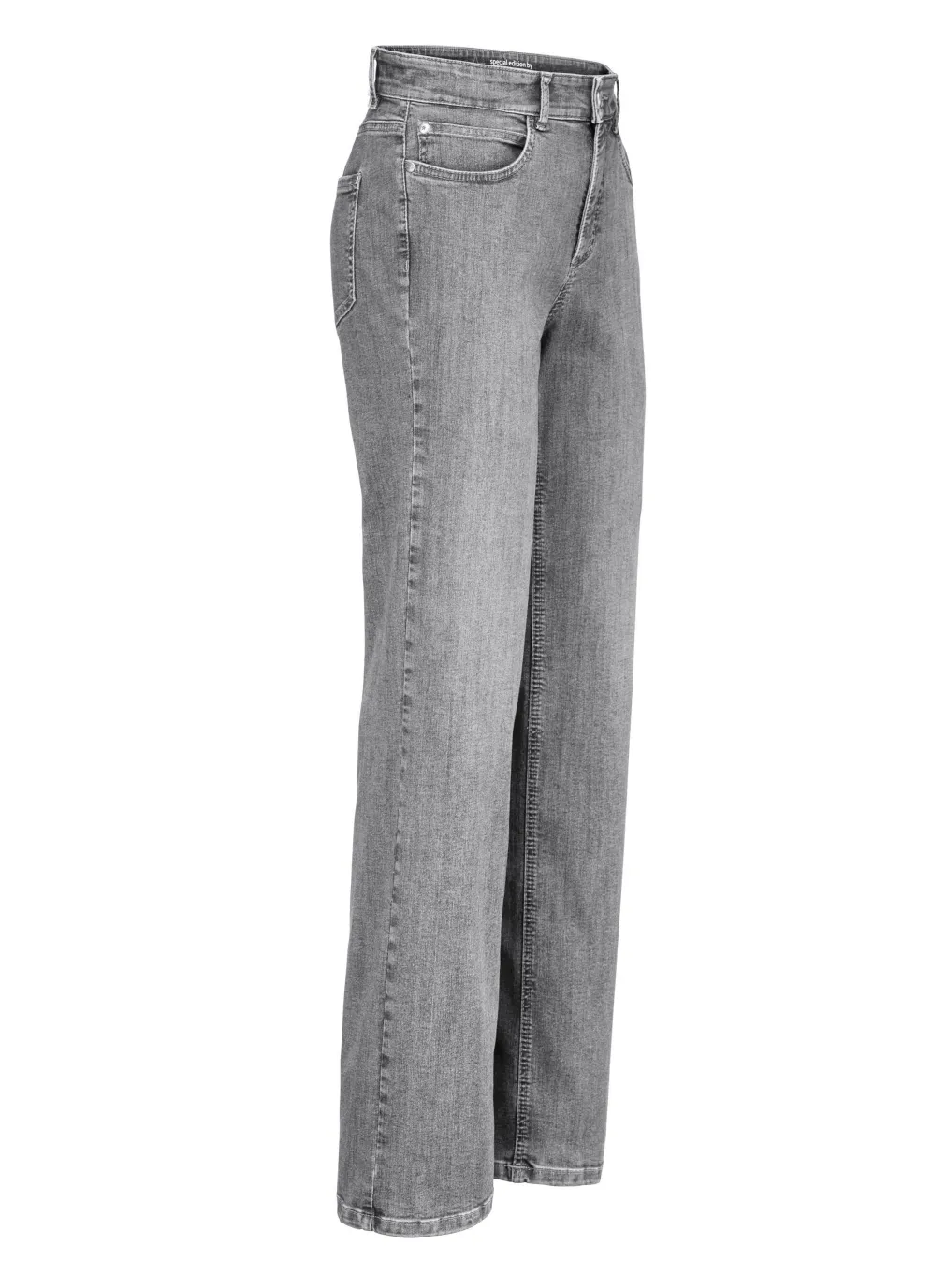 Stars by ascari – Modischer Denim-Look mit Stern-Details. Zeitlose Jeans mit weiterem Beinverlauf in 5-Pocket-Form mit dekorativen Ziernieten, Knopf- und Reißverschluss, Gürtelschlaufen, Jeanssattel, Sternniete auf der Kleingeldtasche sowie Knopf mit Sternprägung. Innenbeinlänge ca. 78 cm, Beinweite ca. 44 cm.