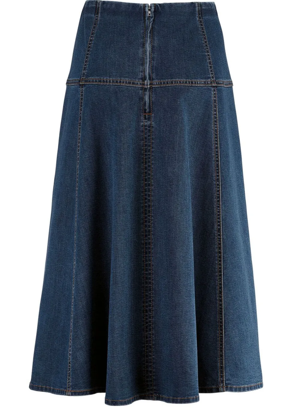 Angesagter 6-Bahnenrock in komfortabler Schlupfform, glatt anliegend dank des innenliegenden, unsichtbaren Rundum-Dehnbundes, Nahtreißverschluss mit Haken im Rückteil, breite Passe rundum sowie kontrastfarbene Teilungsnähte im Vorder- und Rückteil. Gesamtlänge ca. 76 cm.