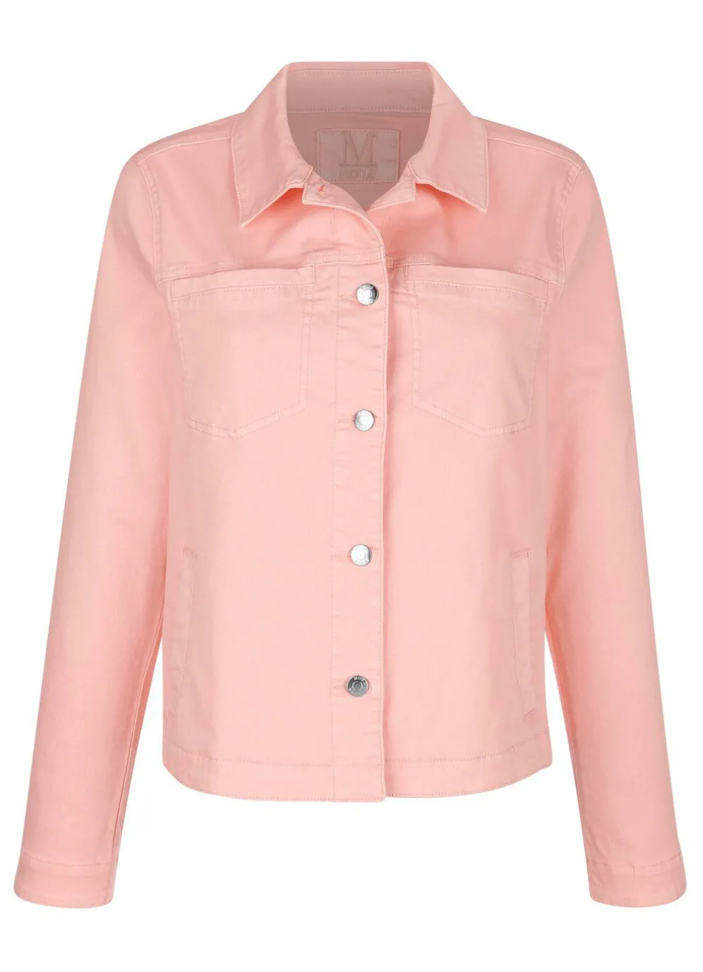 Gerade geschnittene Jeansjacke mit Hemdkragen, Knopfleiste, Brusttaschen, Eingrifftaschen sowie langen Ärmeln mit Knopf und Manschette. Länge ca. 56 cm