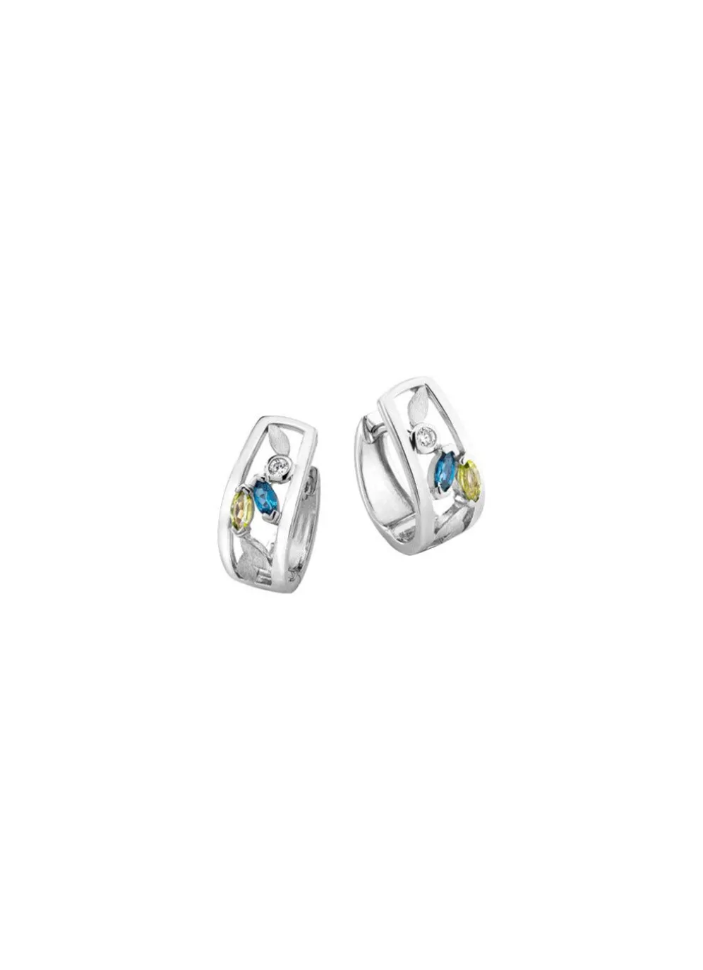 Klappcreolen mit Blautopas, beh., echt Peridot und synth. Zirkonia