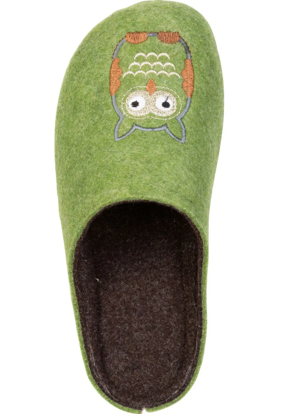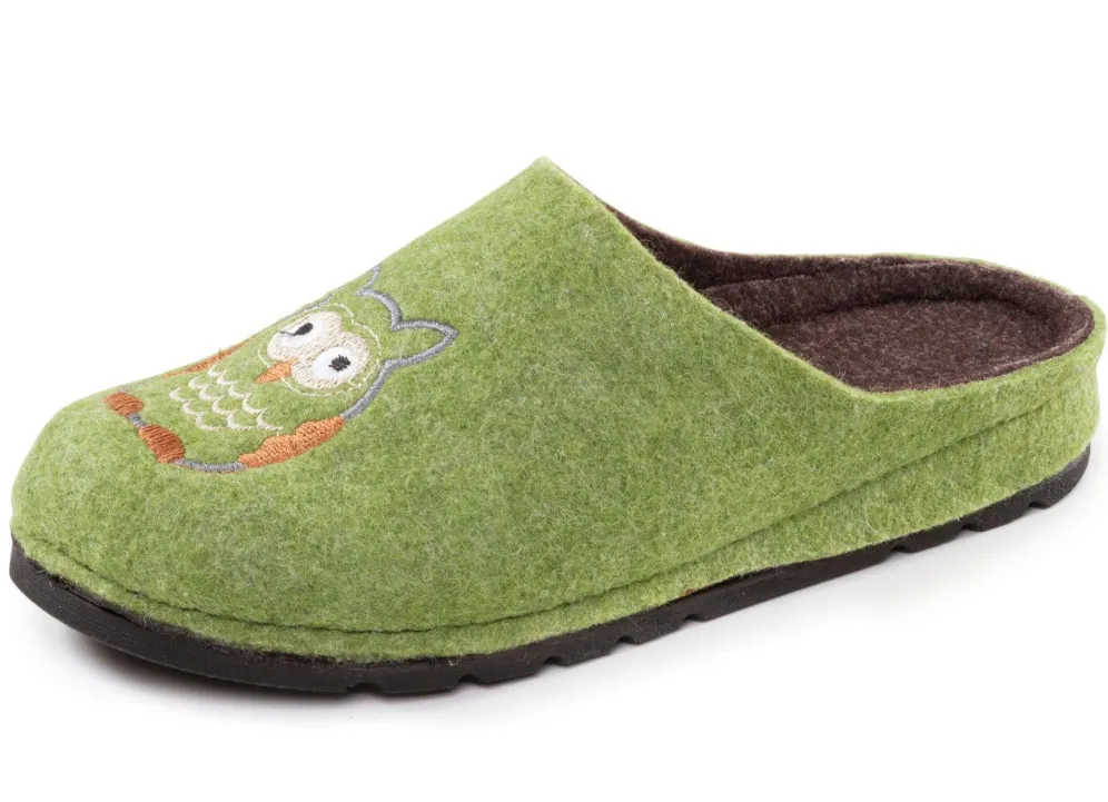 Hausschuhe aus Filzmaterial mit niedlicher Eulen-Stickerei, Filz-Fußbett, leichter PU-Profilsohle sowie 10 mm Keilabsatz