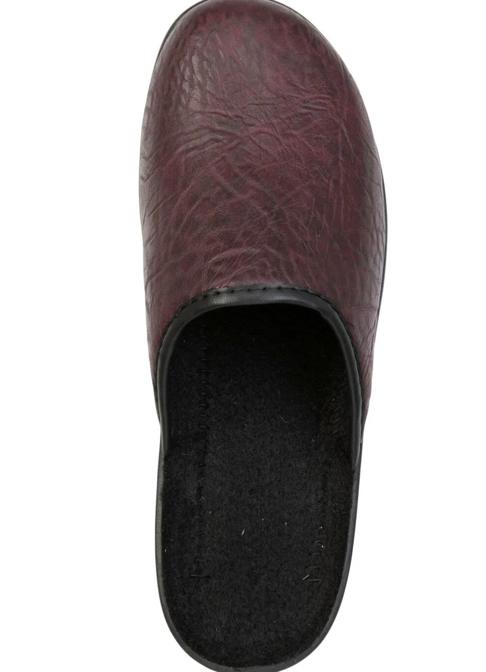 Hausschuhe aus geprägtem, teilweise schattiertem Synthetikmaterial: Futter und Fußbettbezug aus Textil, leichte Synthetiksohle sowie 15 mm Keilabsatz