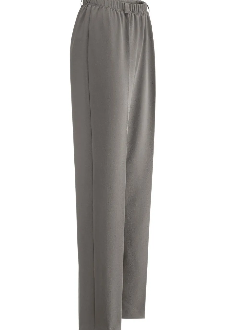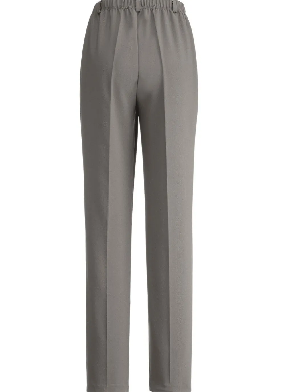 Klassische Hose in Schlupfform, mit Dehnbund rundum sowie Gürtelschlaufen. Ohne Gürtel. Innenbeinlänge ca. 78 cm, Fußweite ab 36 cm.