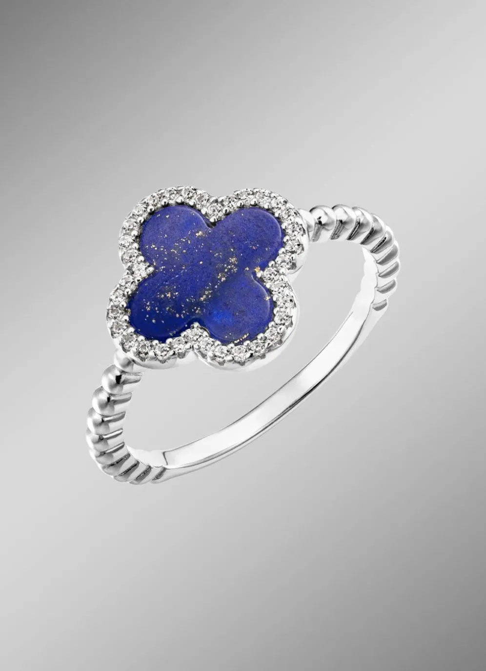 Kleeblatt-Damenring mit echt Lapislazuli und synth. Zirkonia