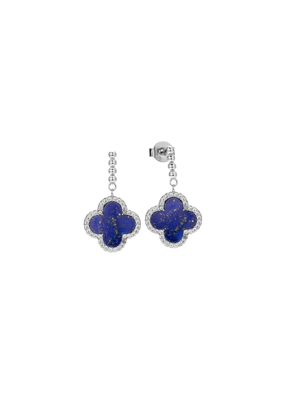 Kleeblatt-Ohrstecker mit echt Lapislazuli und synth. Zirkonia