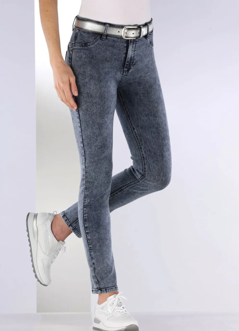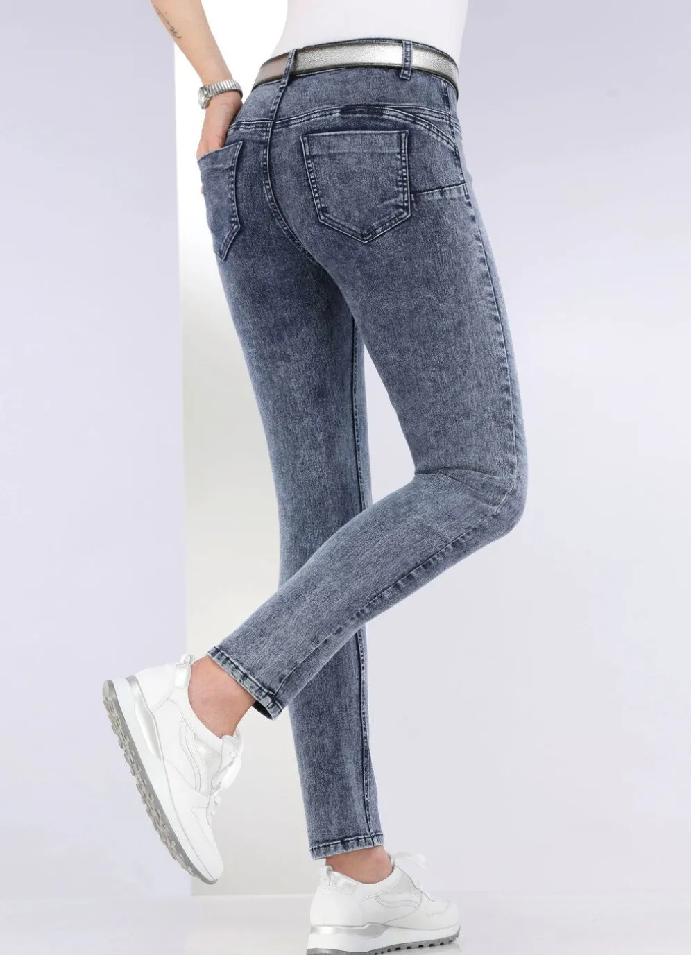 Für eine Traumfigur sorgt diese knöchellange, figurformende und hochelastische Jeans mit Push-Up Effekt: elastischer Formbund, Gürtelschlaufen, Knopf- und Reißverschluss, Ziersteppungen in Seitentaschenoptik, aufgesetzte Gesäßtaschen sowie figurformender Jeanssattel, der für einen knackigen Po sorgt. Die spezielle Färbung sorgt für die besondere Optik! Innenbeinlänge ca. 71 cm, Fußweite ab 28 cm.