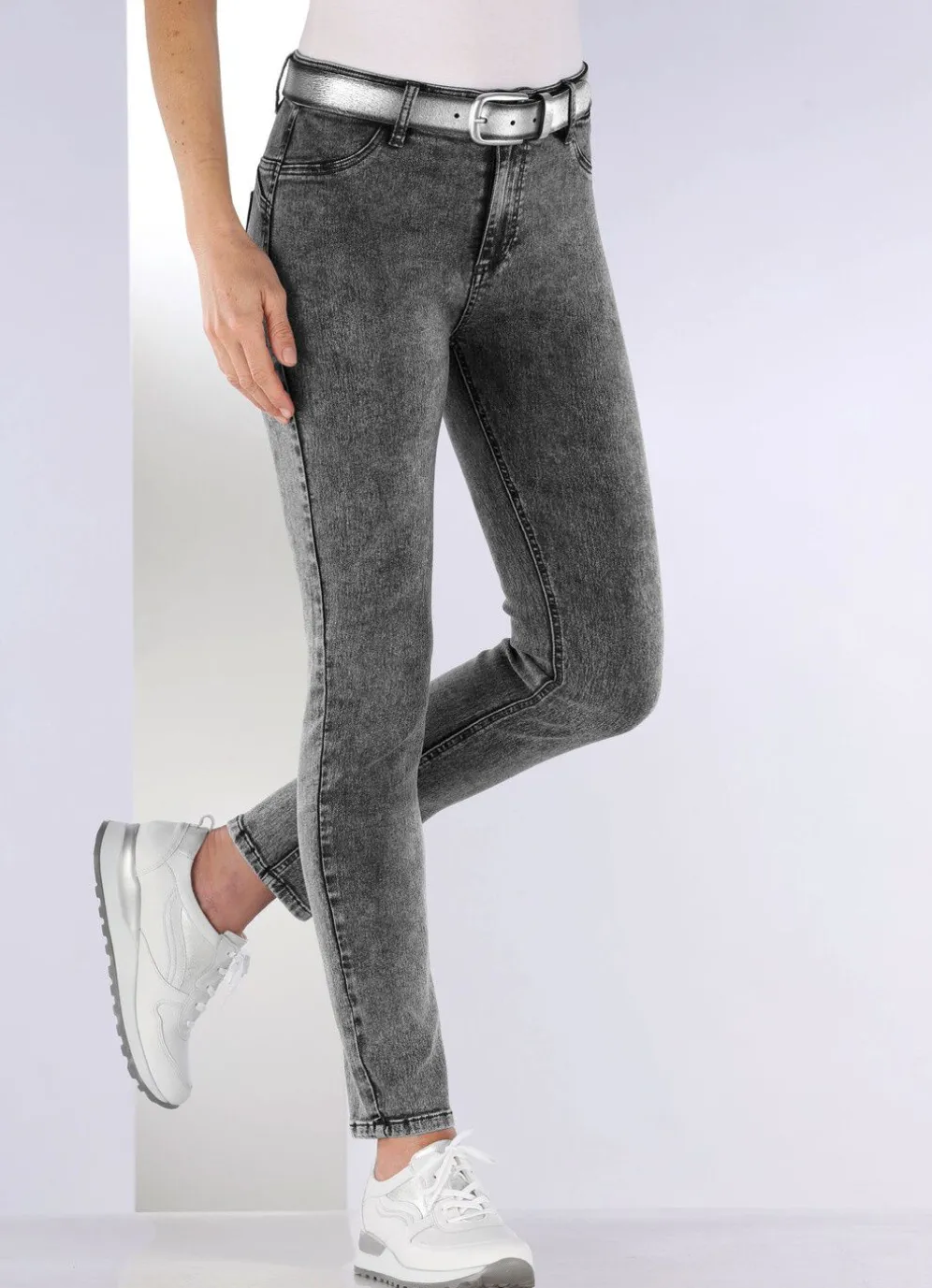 Für eine Traumfigur sorgt diese knöchellange, figurformende und hochelastische Jeans mit Push-Up Effekt: elastischer Formbund, Gürtelschlaufen, Knopf- und Reißverschluss, Ziersteppungen in Seitentaschenoptik, aufgesetzte Gesäßtaschen sowie figurformender Jeanssattel, der für einen knackigen Po sorgt. Die spezielle Färbung sorgt für die besondere Optik! Innenbeinlänge ca. 71 cm, Fußweite ab 28 cm.