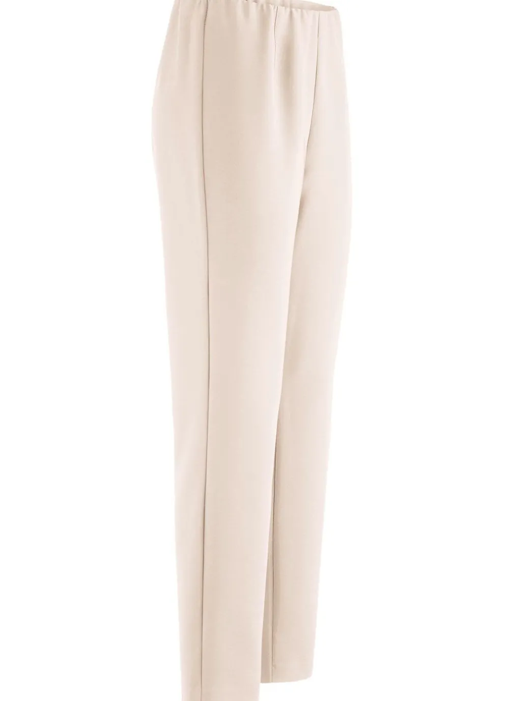 Attraktive, knöchellange Hose mit angeschnittenem Bund, glatt anliegend dank der innenliegenden Gummibund-Einlage sowie figurformende Abnäher im Vorder- und Rückteil. Innenbeinlänge ca. 71 cm, Fußweite ab 30 cm.