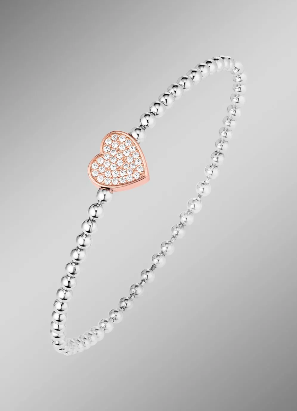 Kugelketten-Armband aus Silber 925/- fein mit Zirkonia-Herz