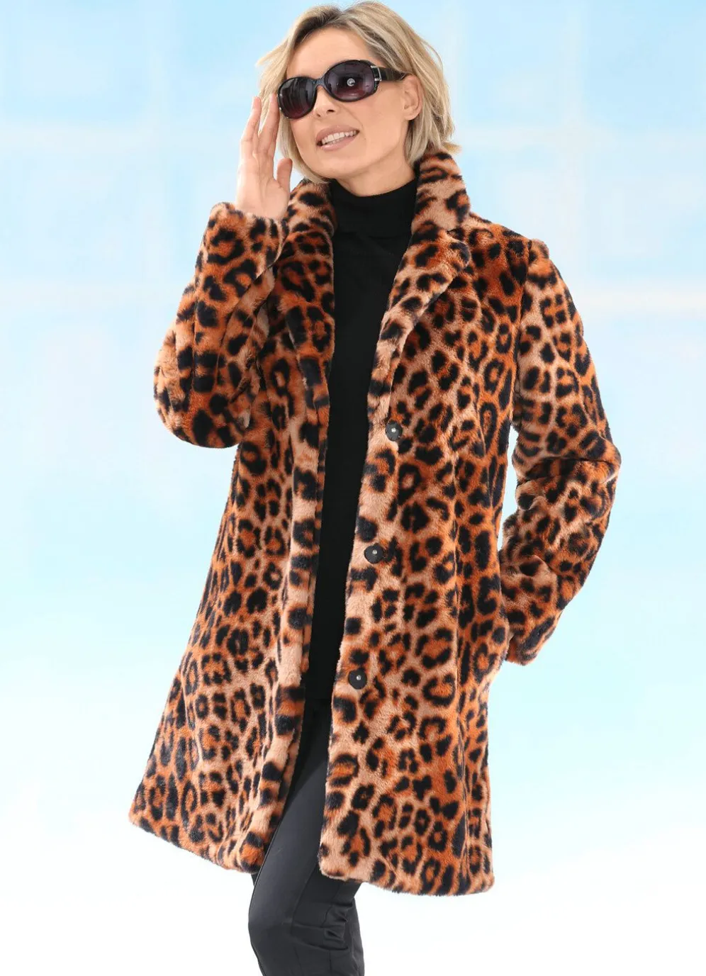 Mantel mit elegantem Raubtierfell-Dessin