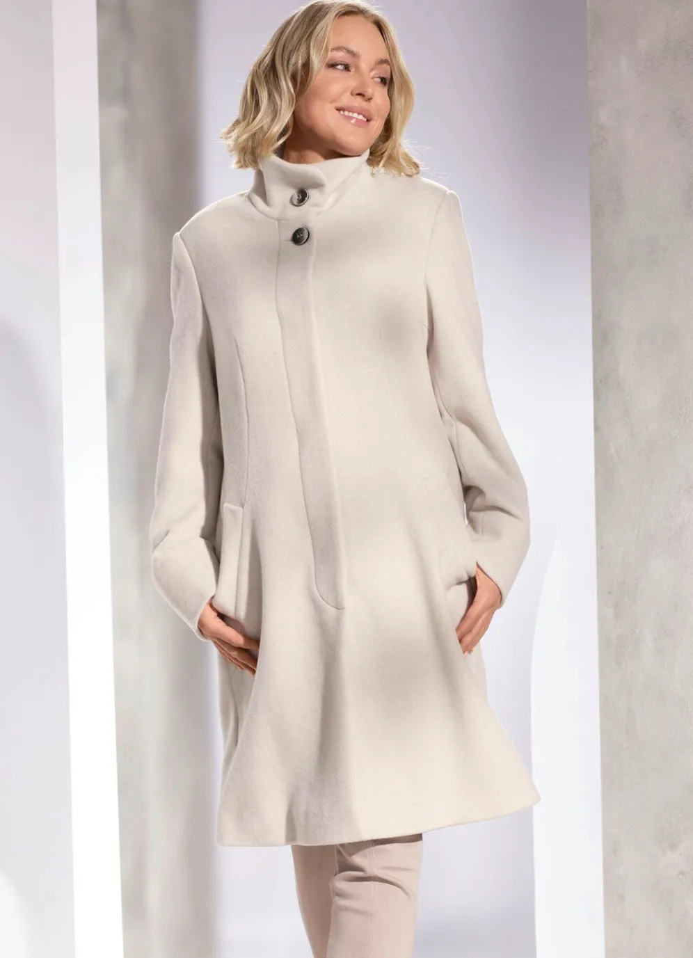 Für alle, die das Besondere lieben ist dieser Kurzmantel genaus das Richtige! Freuen Sie sich auf das Modell mit Knopfverschluss am Stehkragen, verdeckter Knopfleiste, Schubtaschen mit Blende, abnehmbarem Kunstpelz-Besatz am abnehmbaren Schal sowie einer Innentasche. Länge ca. 97 cm.