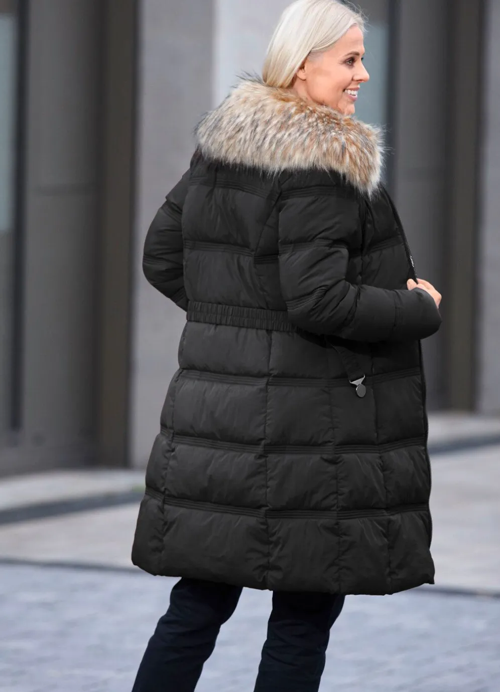 - hoch schließbarer Kragen mit abnehmbarem Kunstpelz-Besatz