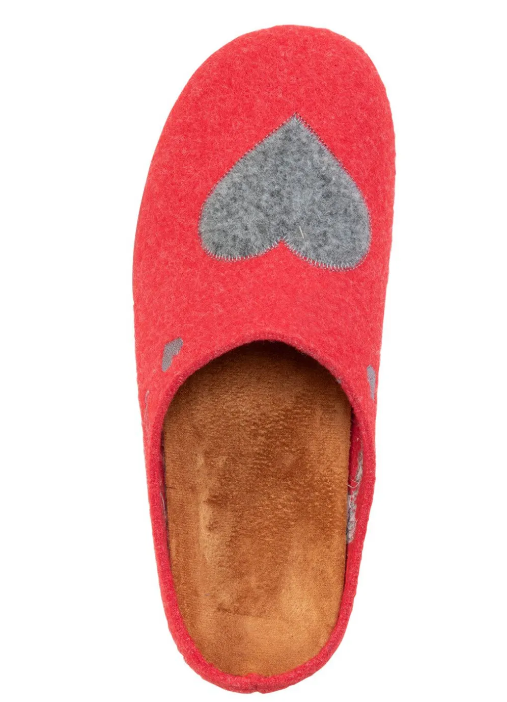 Hausschuhe von „Laurina“, aus Filz mit kontrastfarbener Applikation und Stickerei: herausnehmbares Fußbett, leichte Gummi-Laufsohle sowie 10 mm Keilabsatz