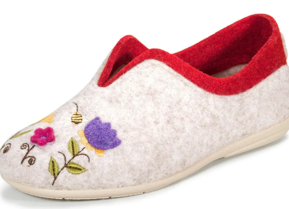 Hausschuhe von Laurina, aus Filz mit fantasievoller Motiv-Stickerei: in Weite G, gepolsterte Decksohle, leichte Gummi-Laufsohle sowie 15 mm Keilabsatz
