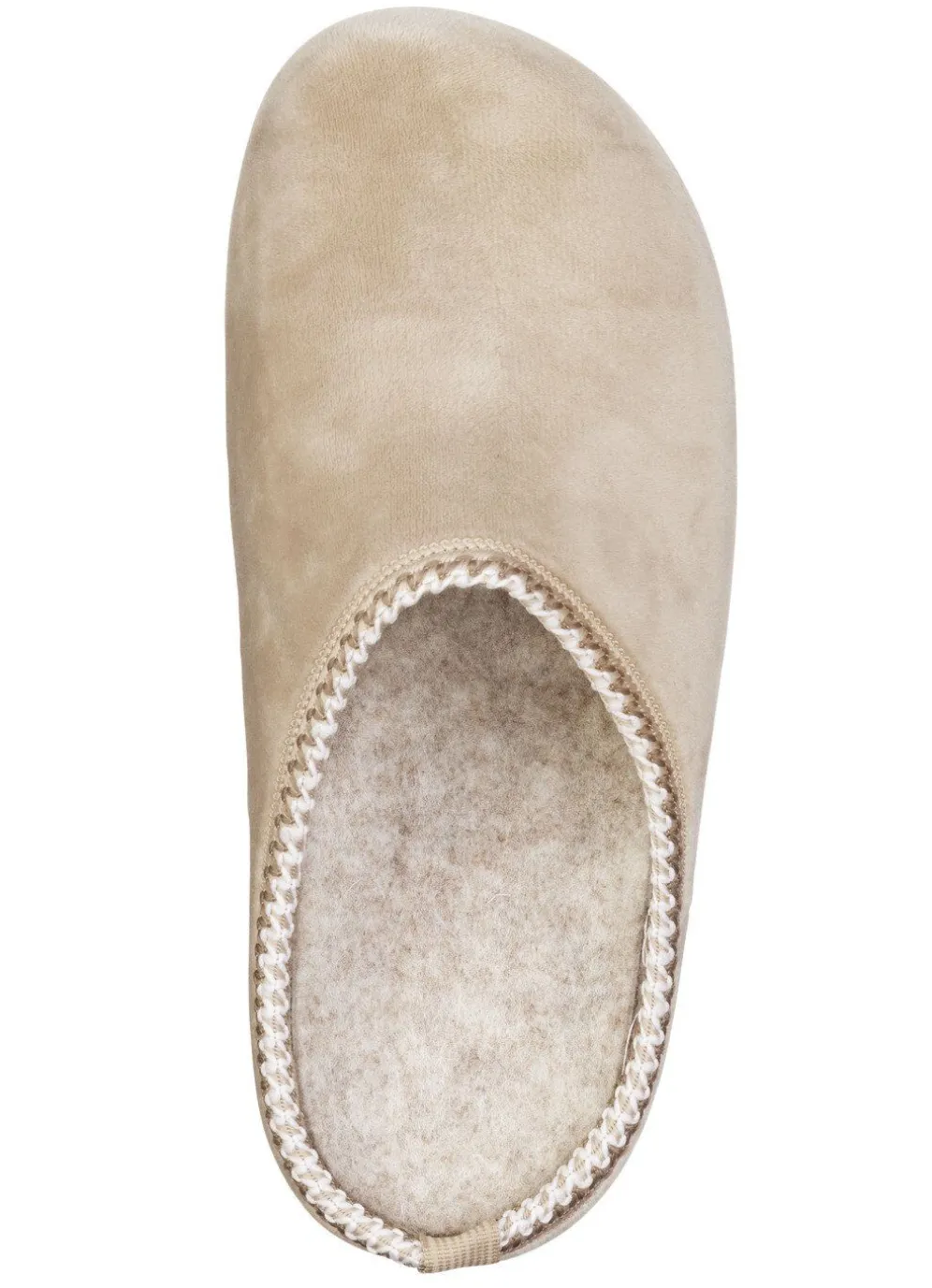 Aktuelle Hausschuhe von Laurina, aus samtigem Textilmaterial, mit gemusterter Bordüre: Weite G, Textilfutter, gepolsterte Filz-Decksohle, leichte PU-Laufsohle sowie 10 mm Keilabsatz