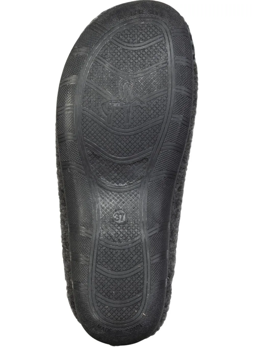 Hausschuhe von „Laurina“, aus Filz, teilweise mit Leo-Druck: Weite H, Futter und gepolsterte Decksohle aus Samt, leichte Gummi-Laufsohle sowie 15 mm Keilabsatz