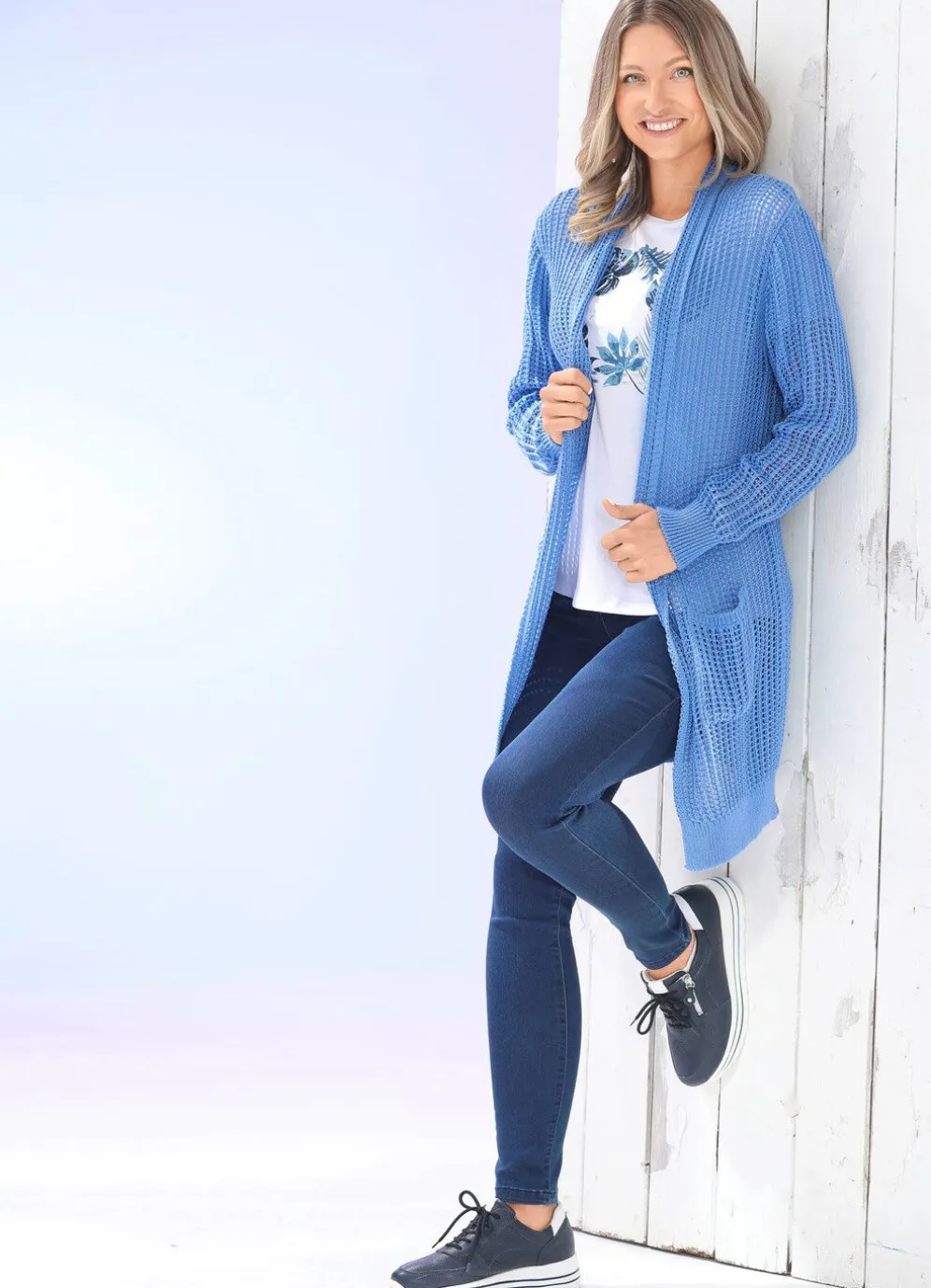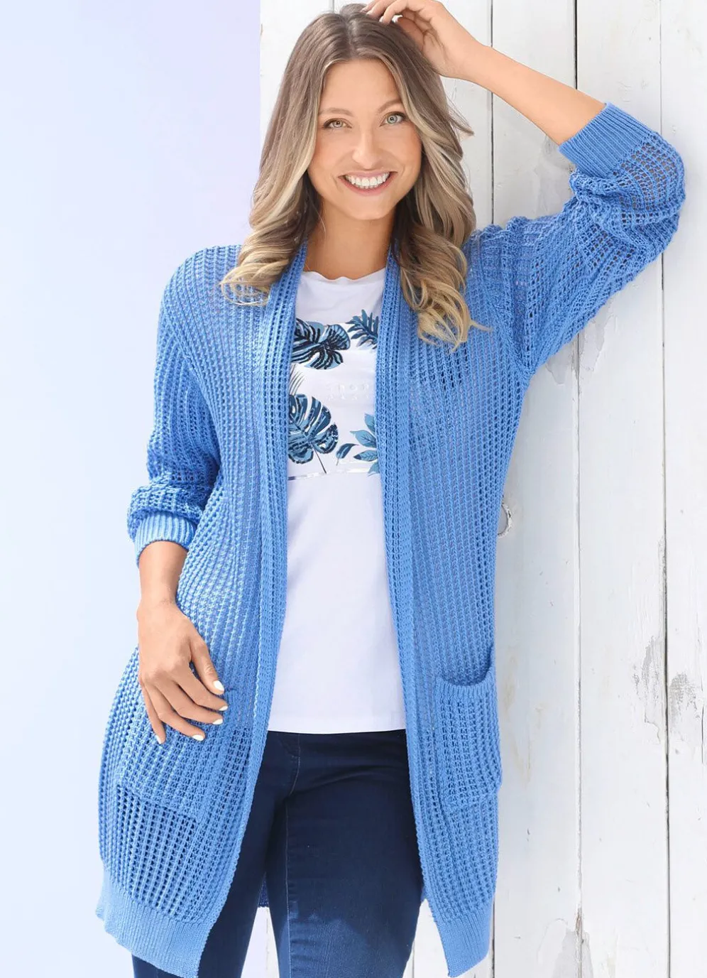 Long-Strickjacke in Ajourdessin